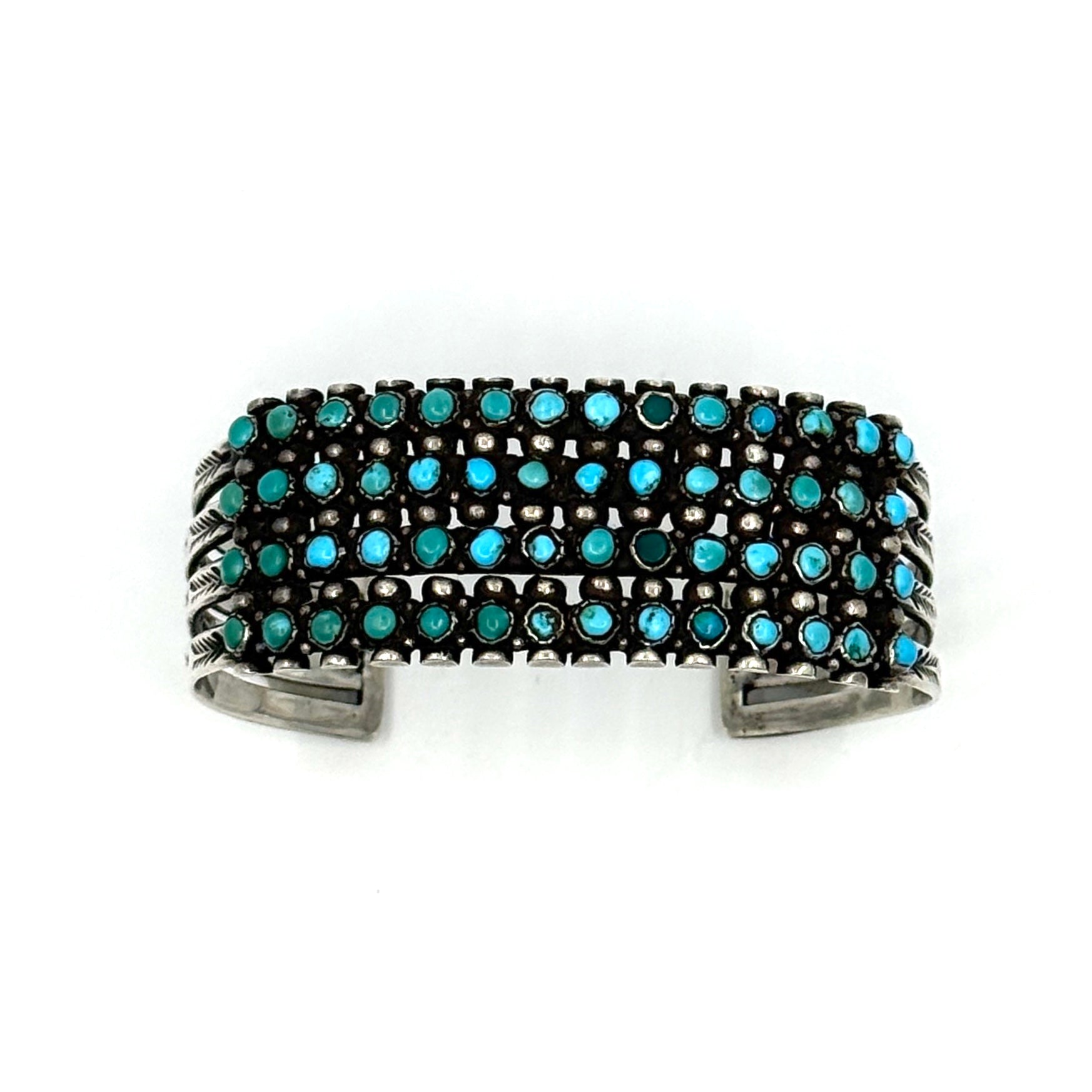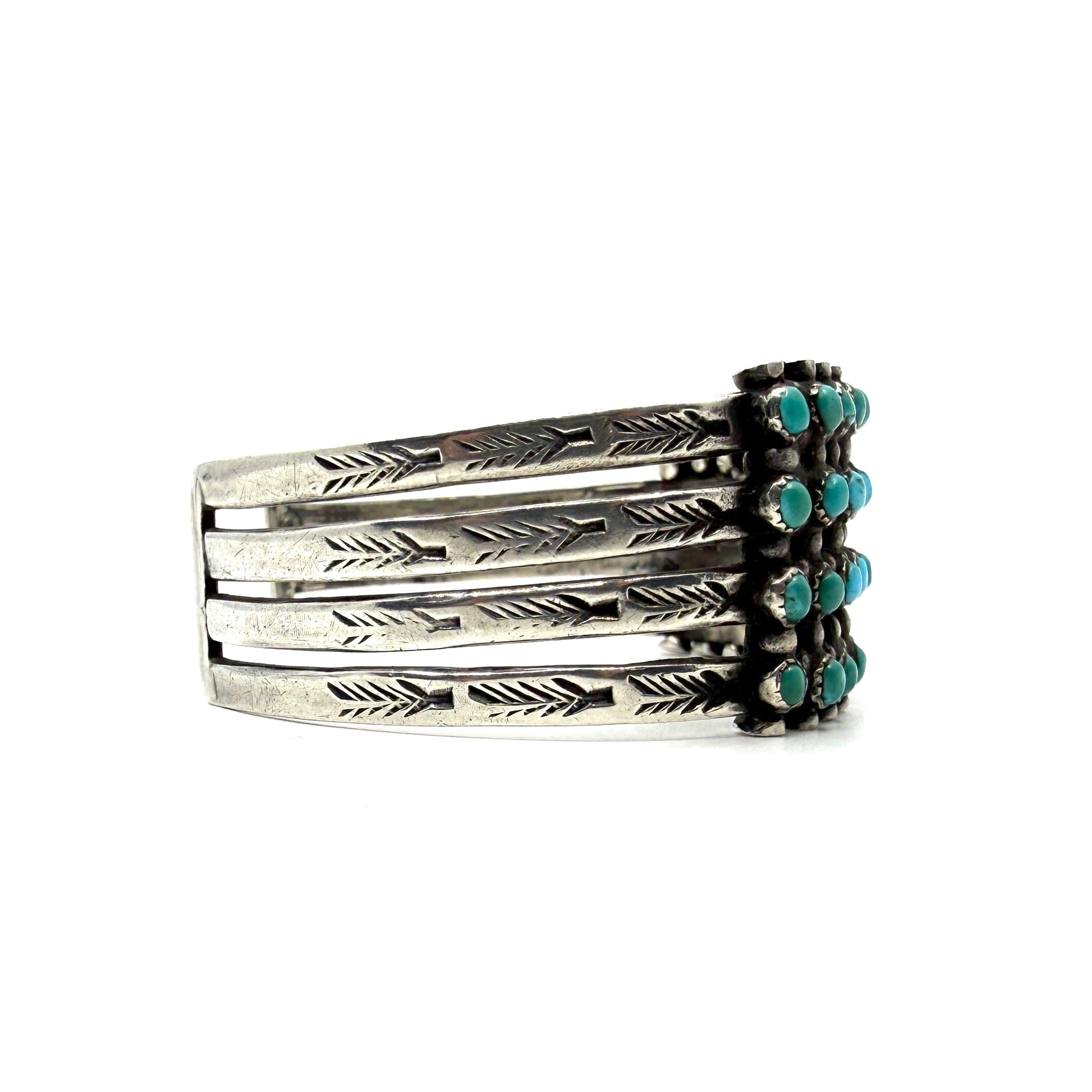 Vintage Zuni Four Row Snake Eye Bracelet 56 Turquoise Stones
