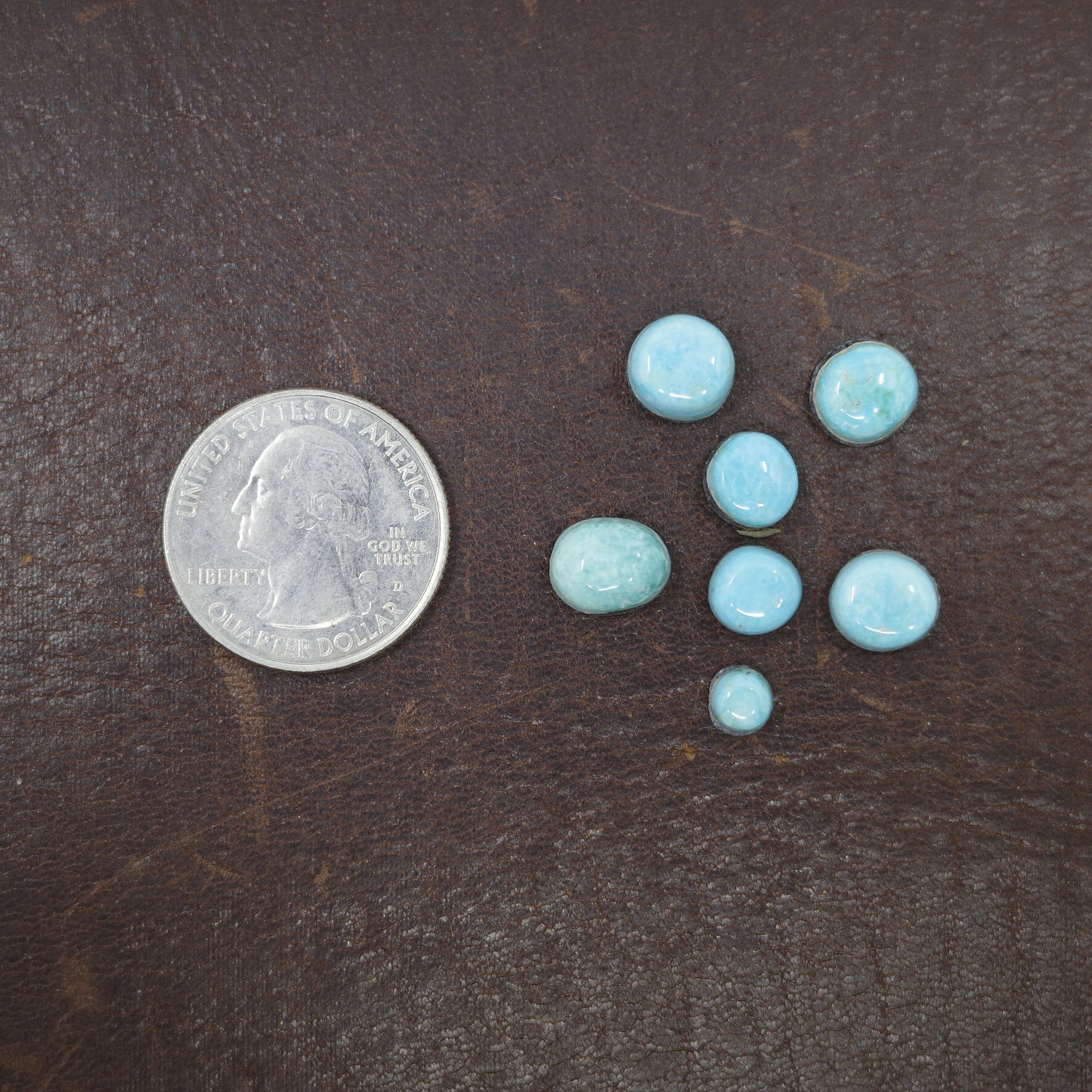 Set of seven natural Poquito Ridge Turquoise Cabs.