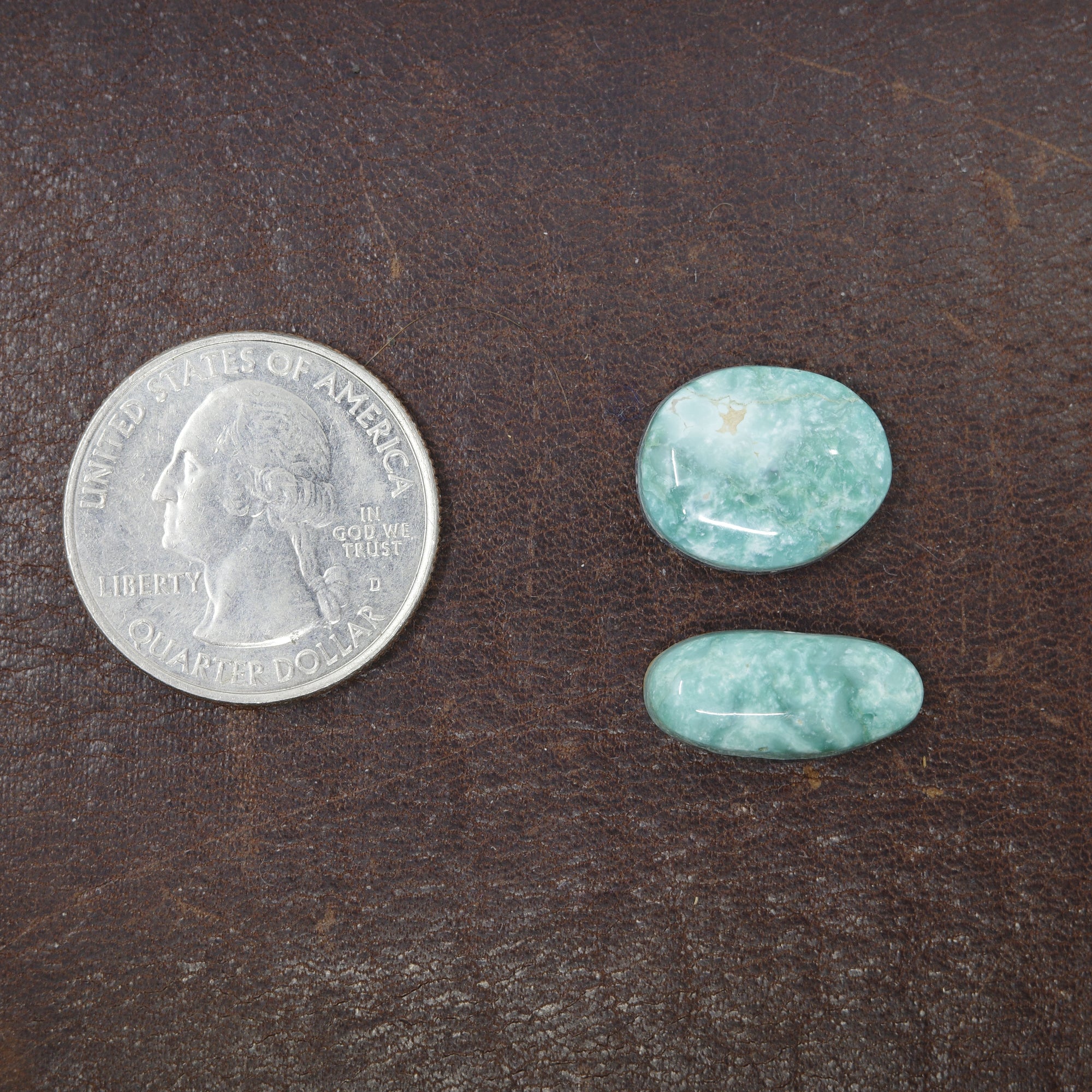 Two Poquito Ridge Turquoise Cabochons.