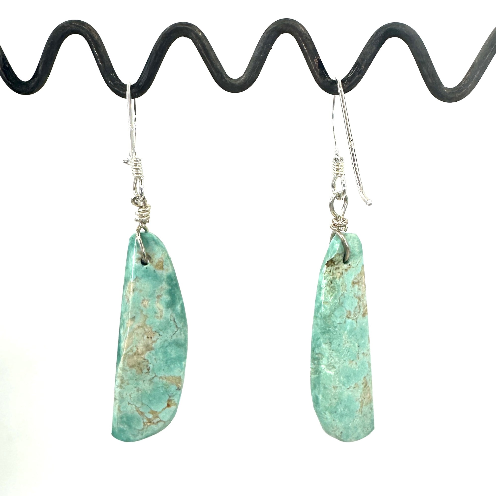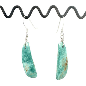 Hand-Cut Poquito Ridge Turquoise Tab Earrings with Sterling Silver Earring Wire