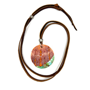 Pendant Size: 1-7/8" diameter Leather Adjustable to 34"
