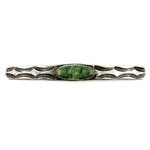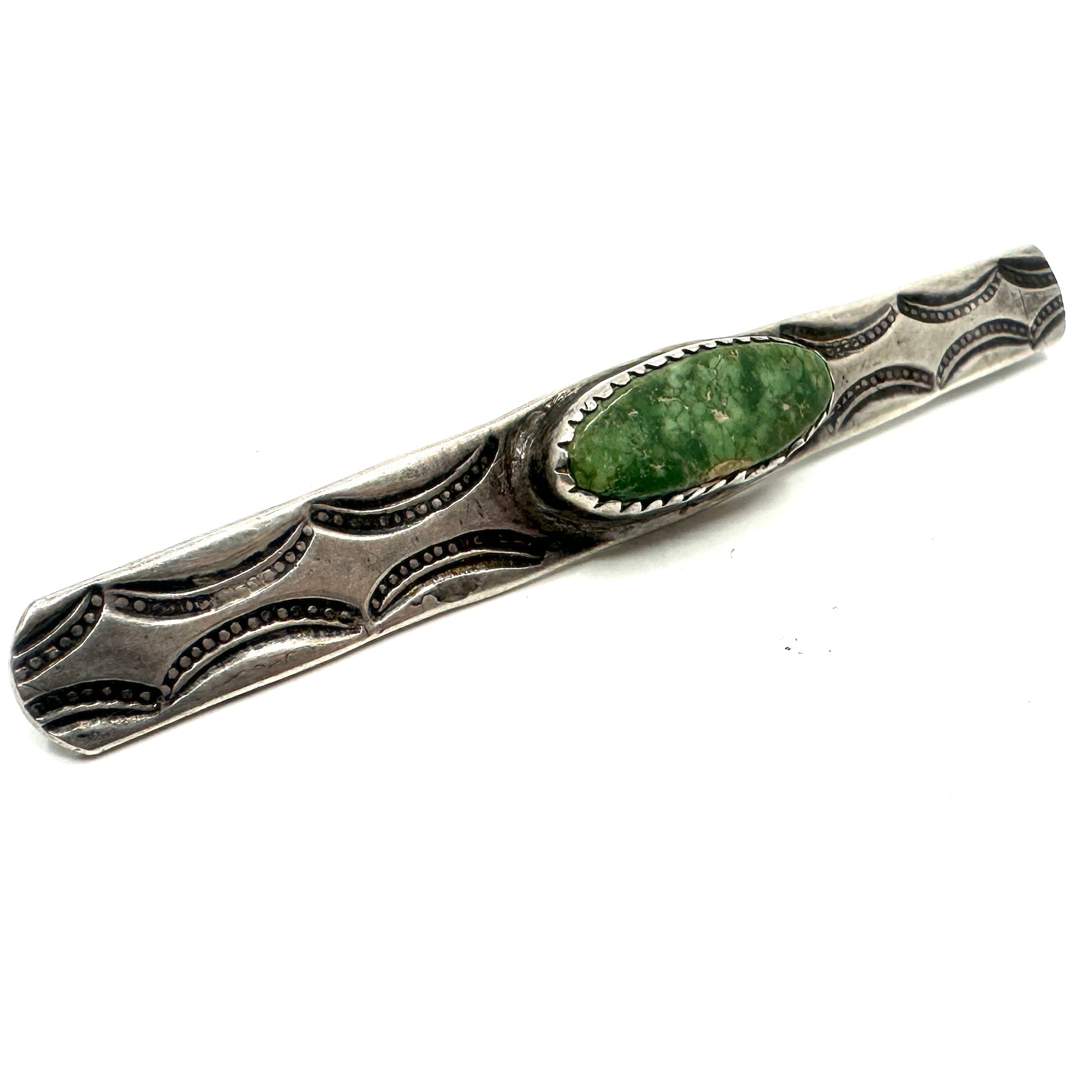 Vintage Ingot Stamped Pin with Greasy Green Turquoise
