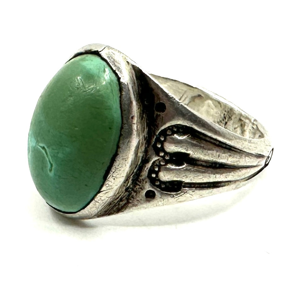 Vintage Navajo Ingot Stamped Ring with Green Turquoise Stone.