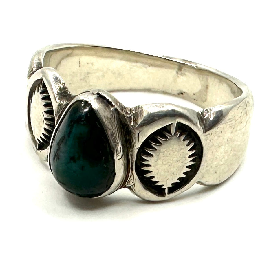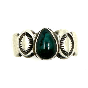 Vintage Ingot Stamped Ring with Turquoise Size 7