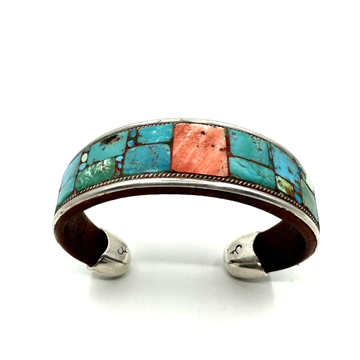 Charlie Favour Turquoise Inlay Cuff with Spiny Oyster Shell