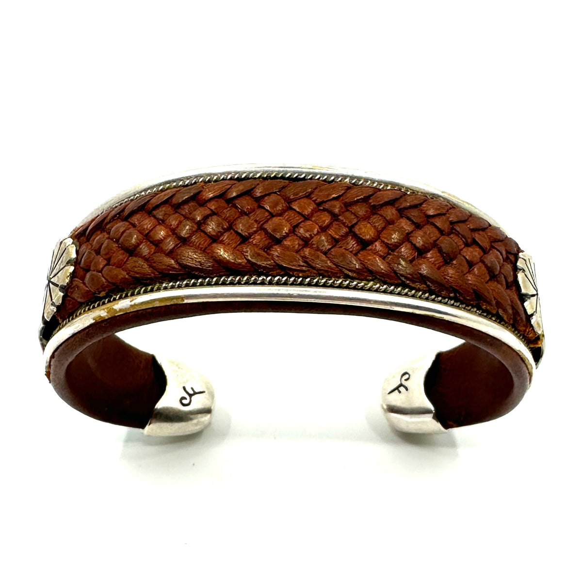 Charlie Favour Braided Leather, Turquoise and Silver Cuff