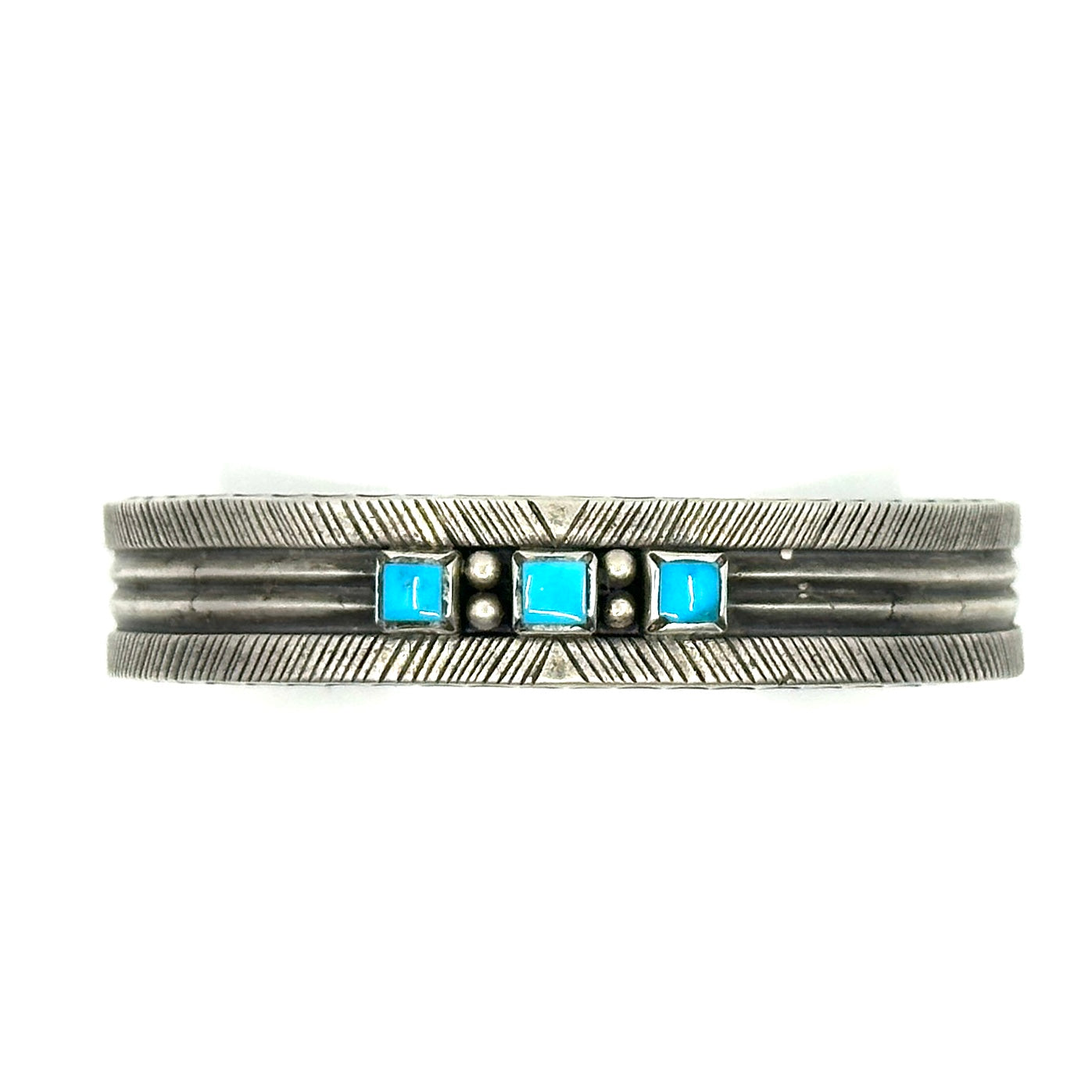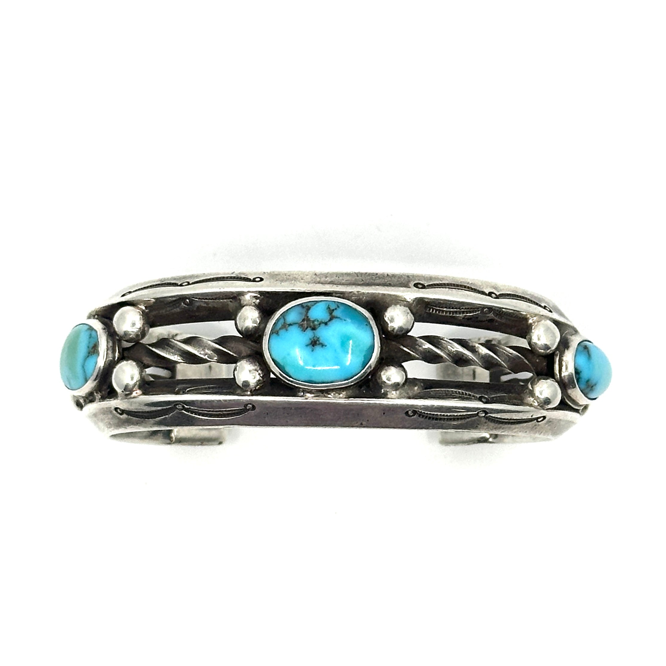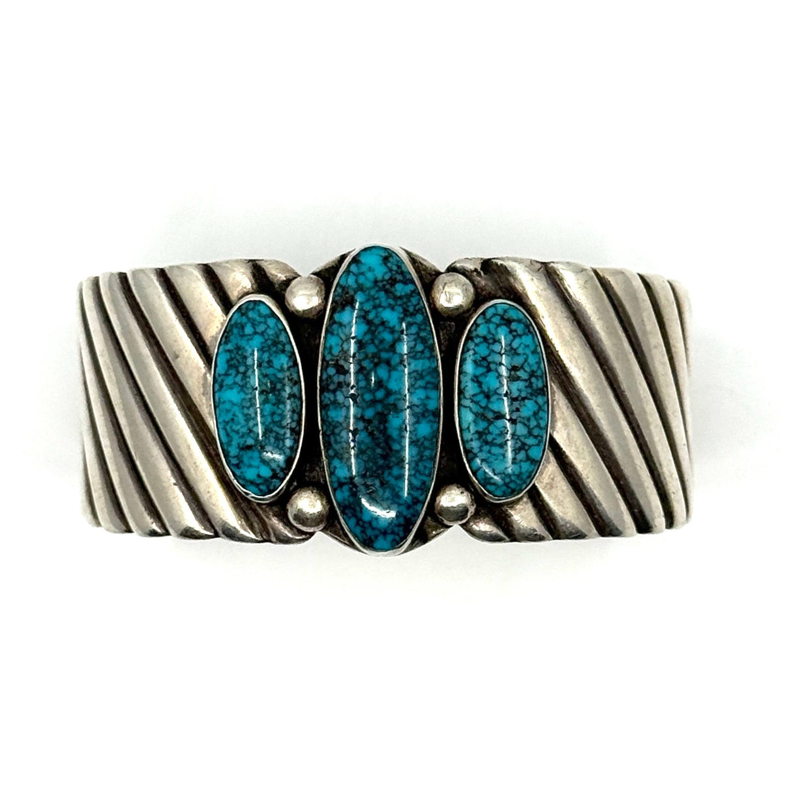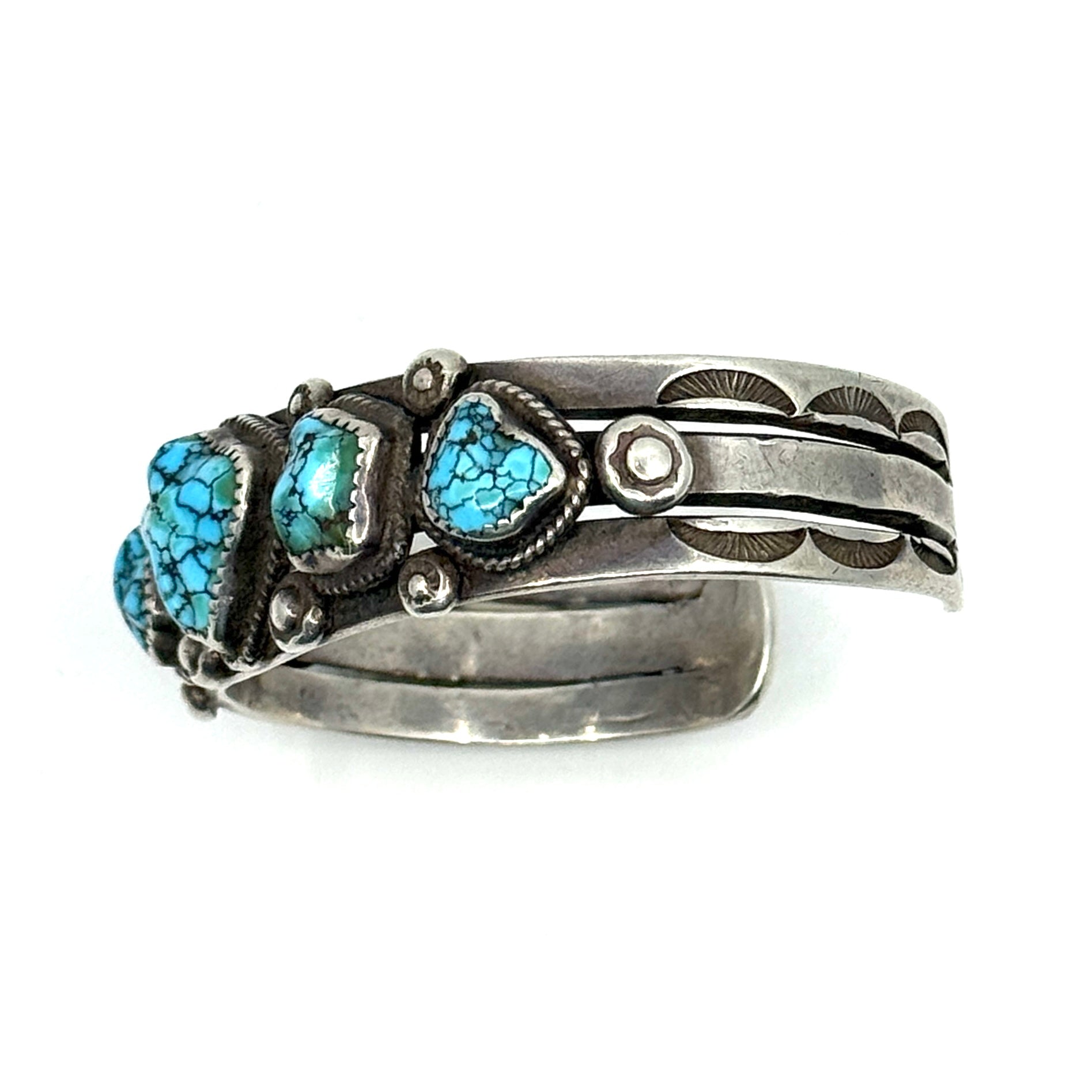 Vintage Navajo Ingot Cuff with Five High-Grade Persian Turquoise Stones