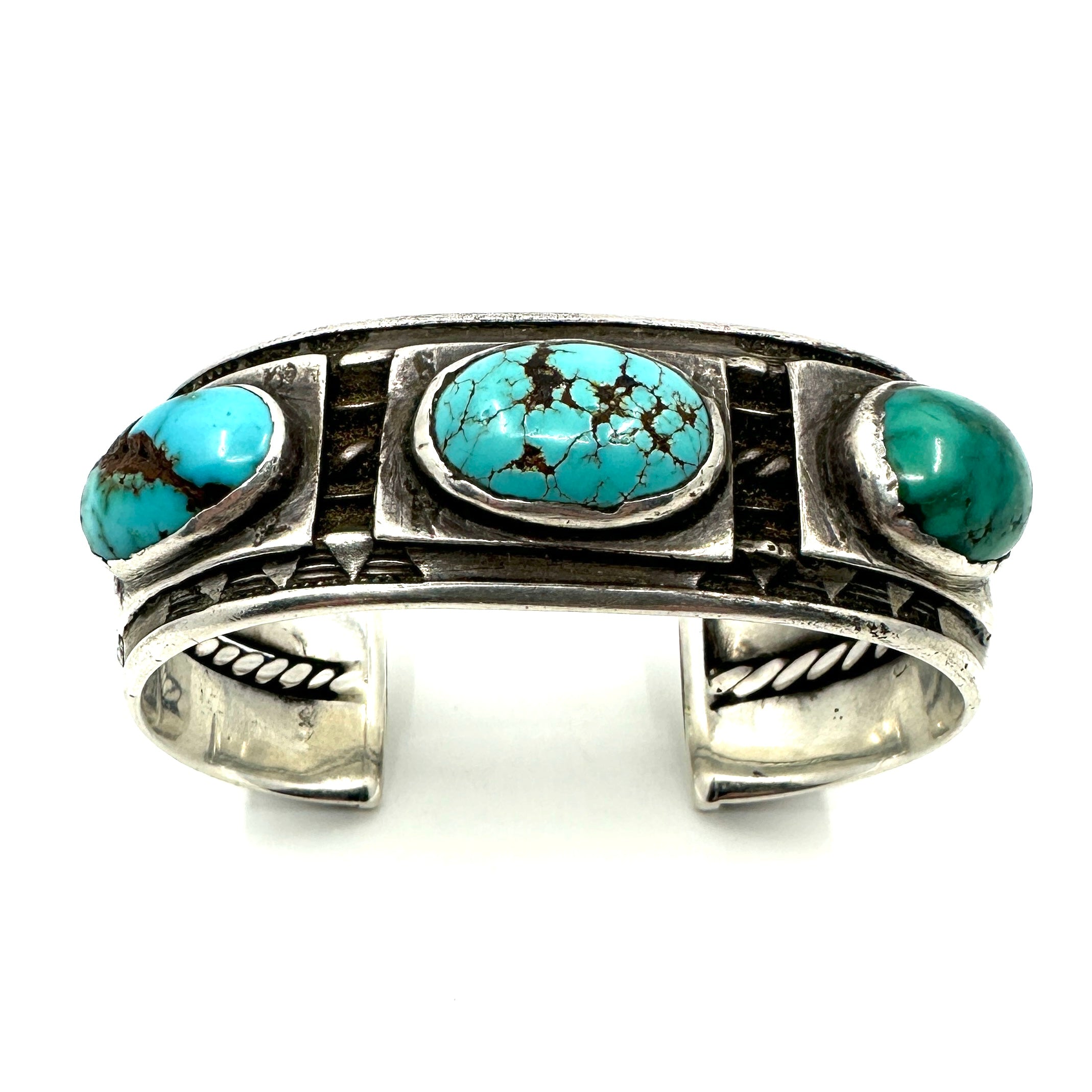Coin Silver Three-Rope Bracelet with Harcross Turquoise by Joe O'Neill (Falcon Trading Company)