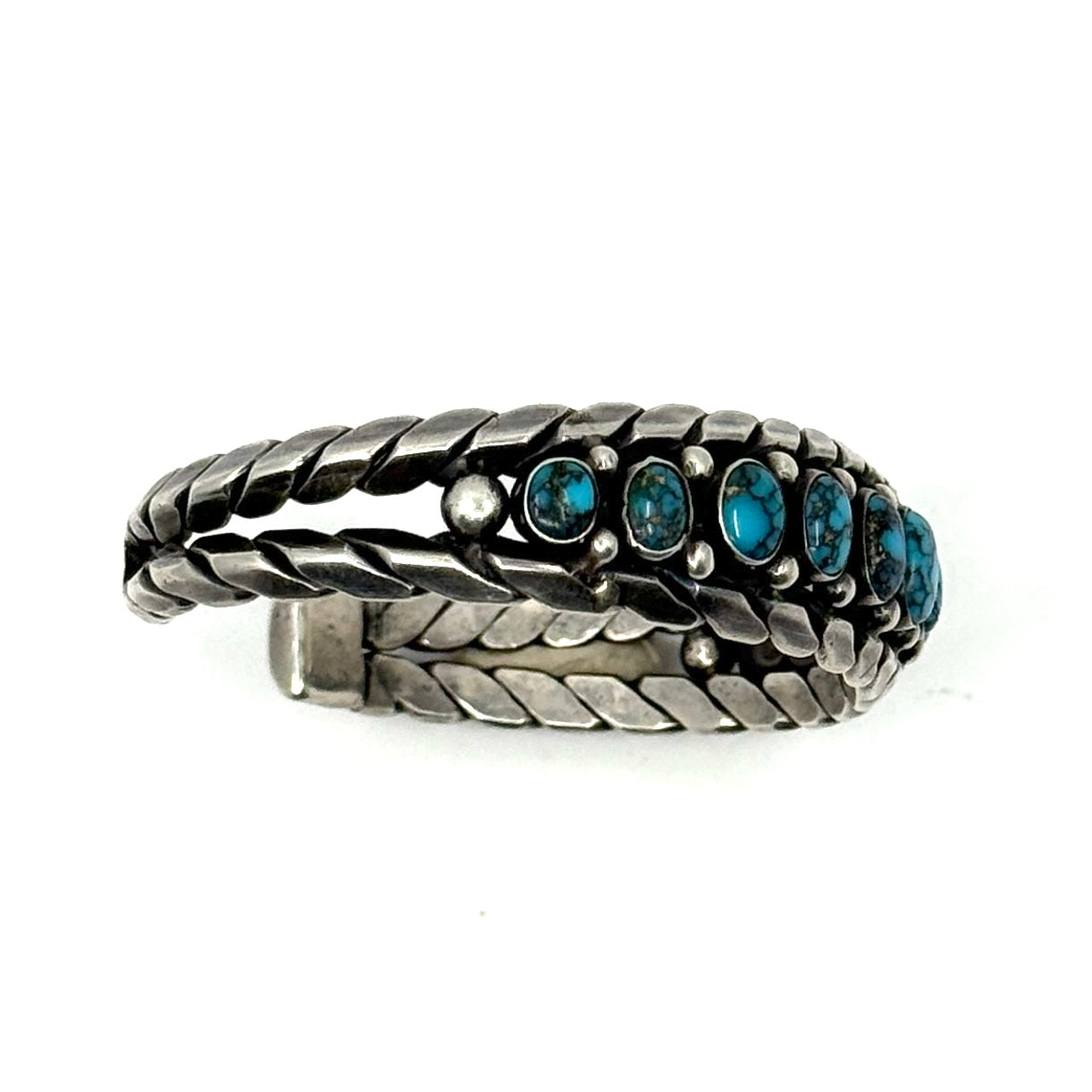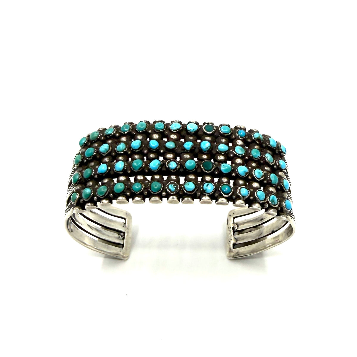 Vintage Zuni Four Row Snake Eye Bracelet 56 Turquoise Stones