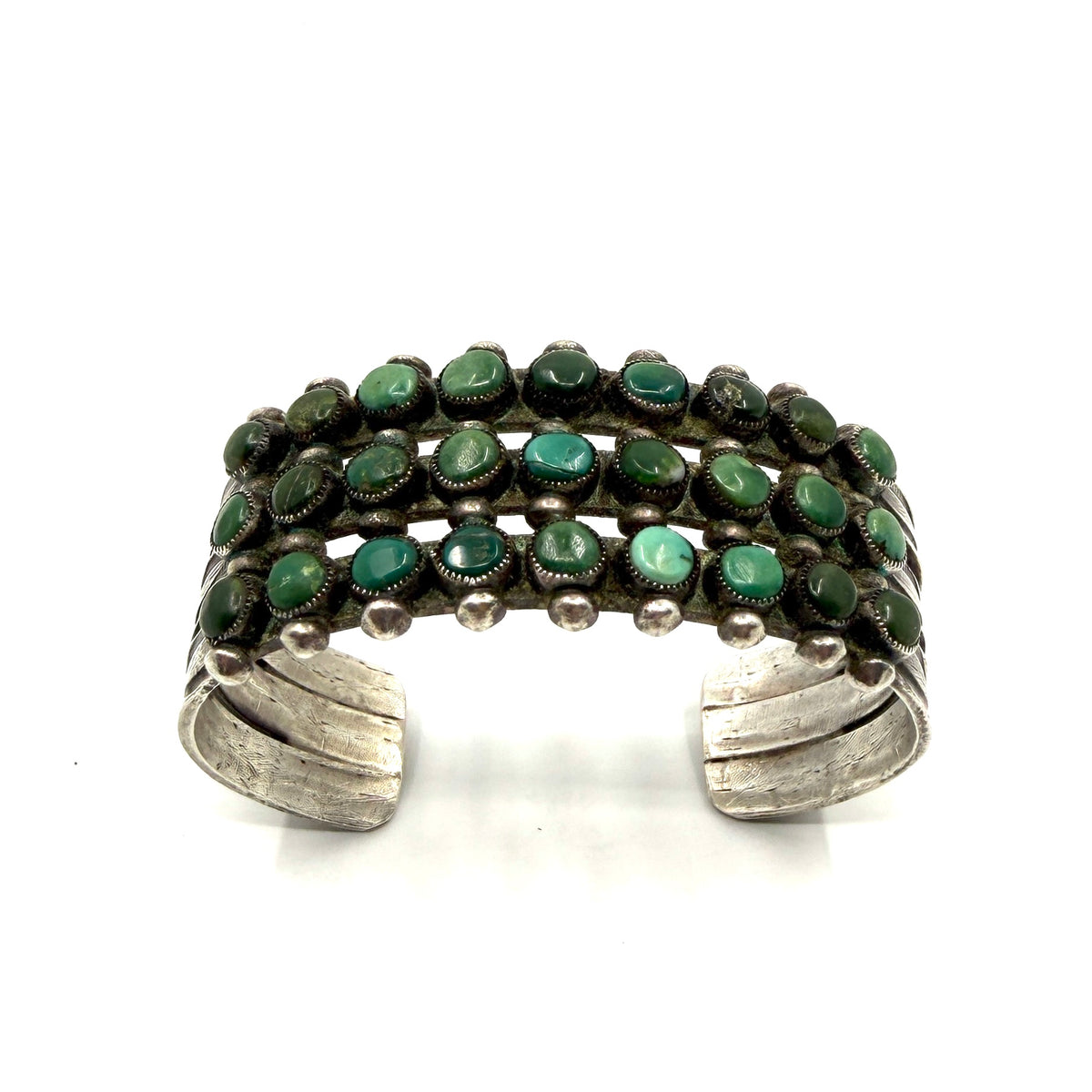 Vintage Zuni Row Bracelet with 27 Green Turquoise Stones