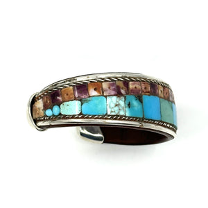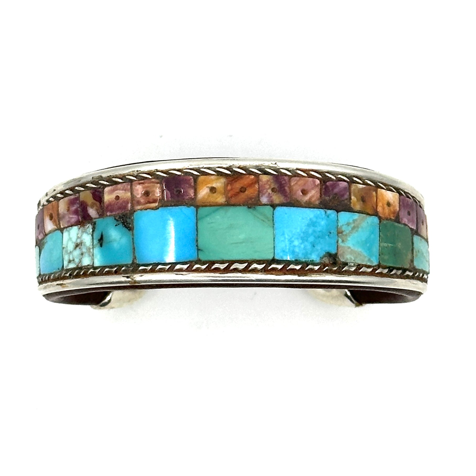 Charlie Favour Turquoise Inlay Cuff with Spiny Oyster Shell