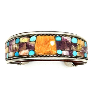 Charlie Favour Turquoise Inlay Cuff with Spiny Oyster Shell