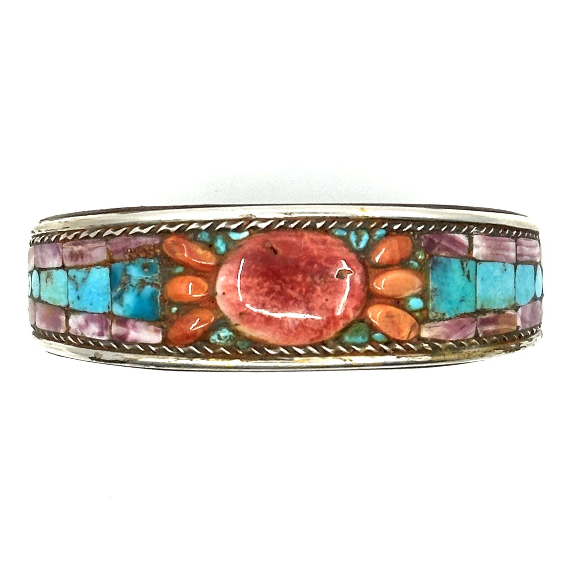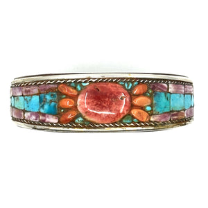 Charlie Favour Turquoise Inlay Cuff with Spiny Oyster Shell Oval