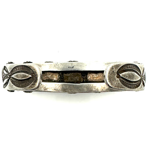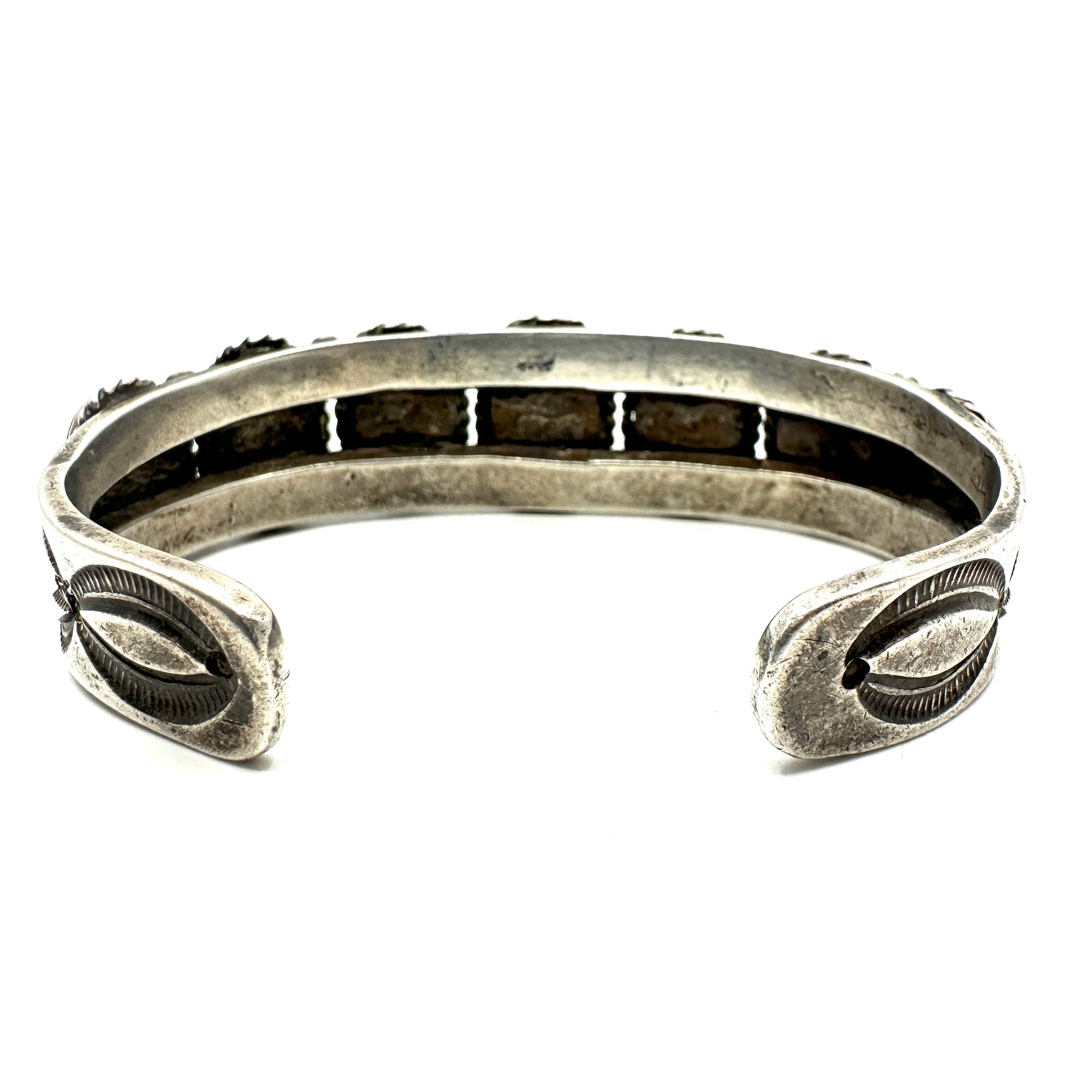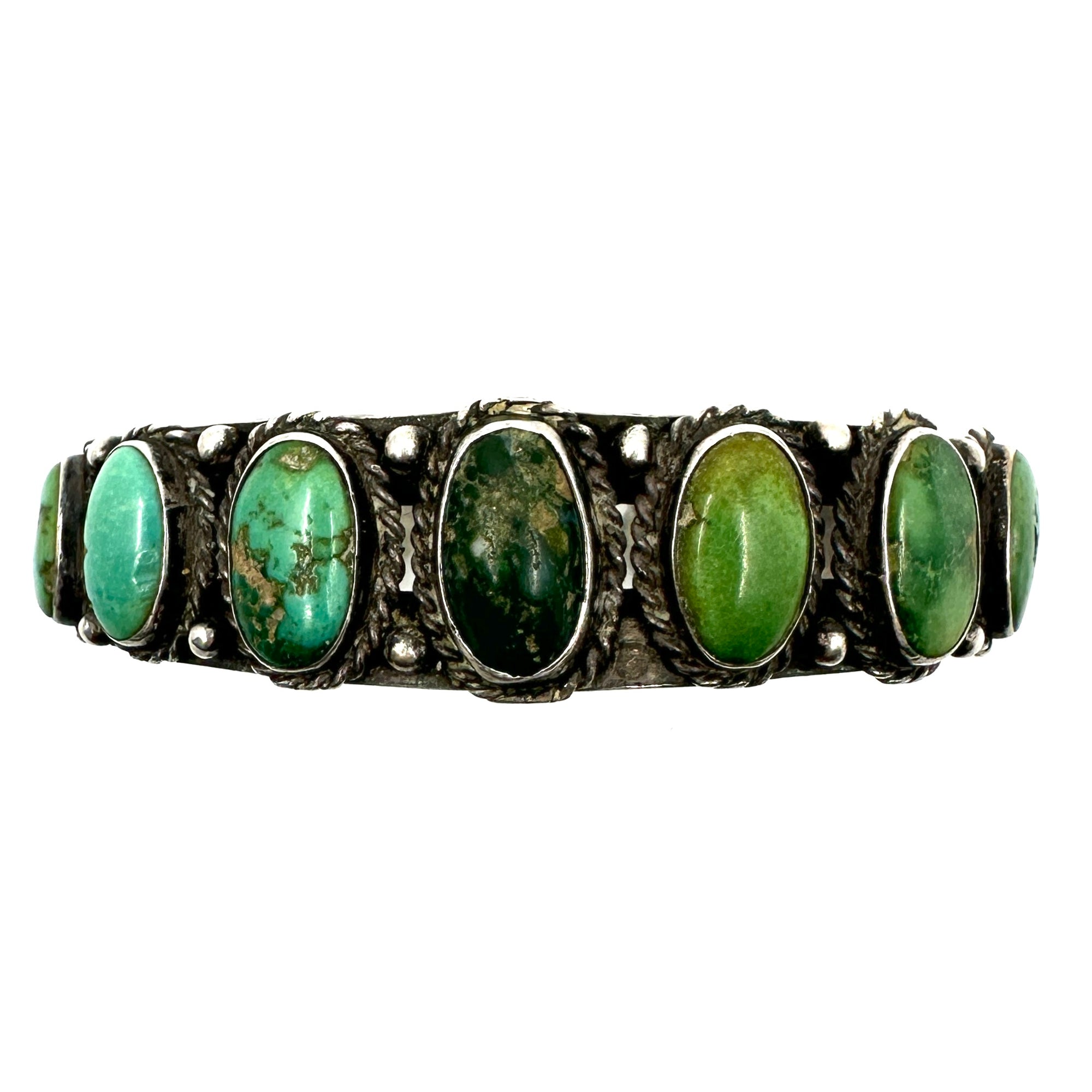 Vintage Ingot Split Shank Row Bracelet with Seven Greasy Green Turquoise Stones.