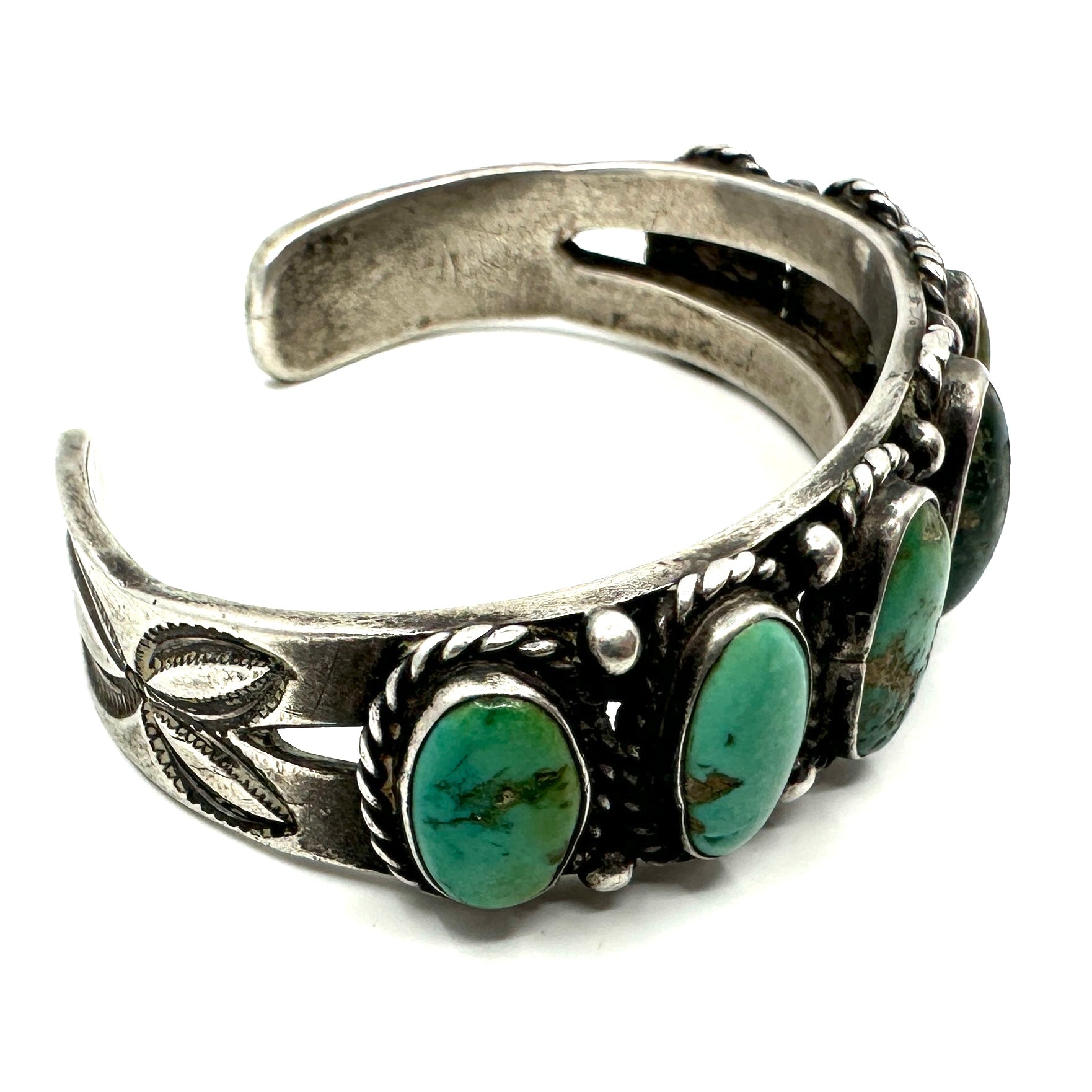 Vintage Split Shank Row Bracelet with Greasy Green Turquoise