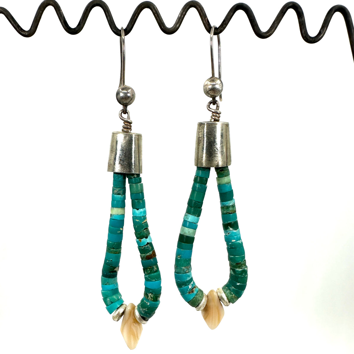 Jesse Robbins Double Fan Sterling Silver Earrings with Poquito Ridge Turquoise