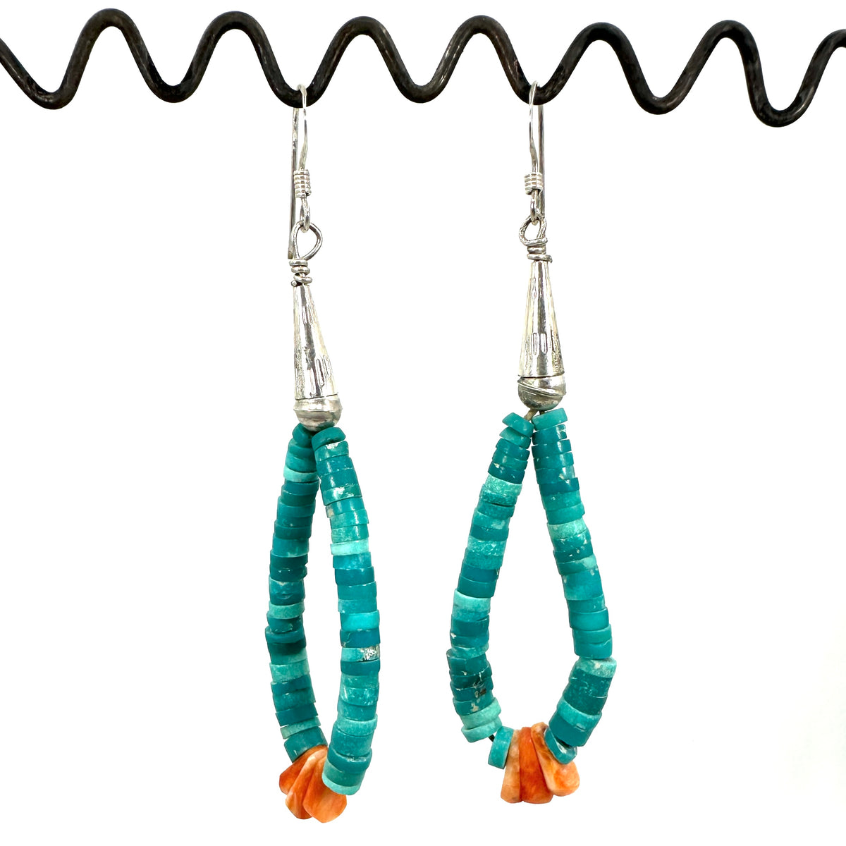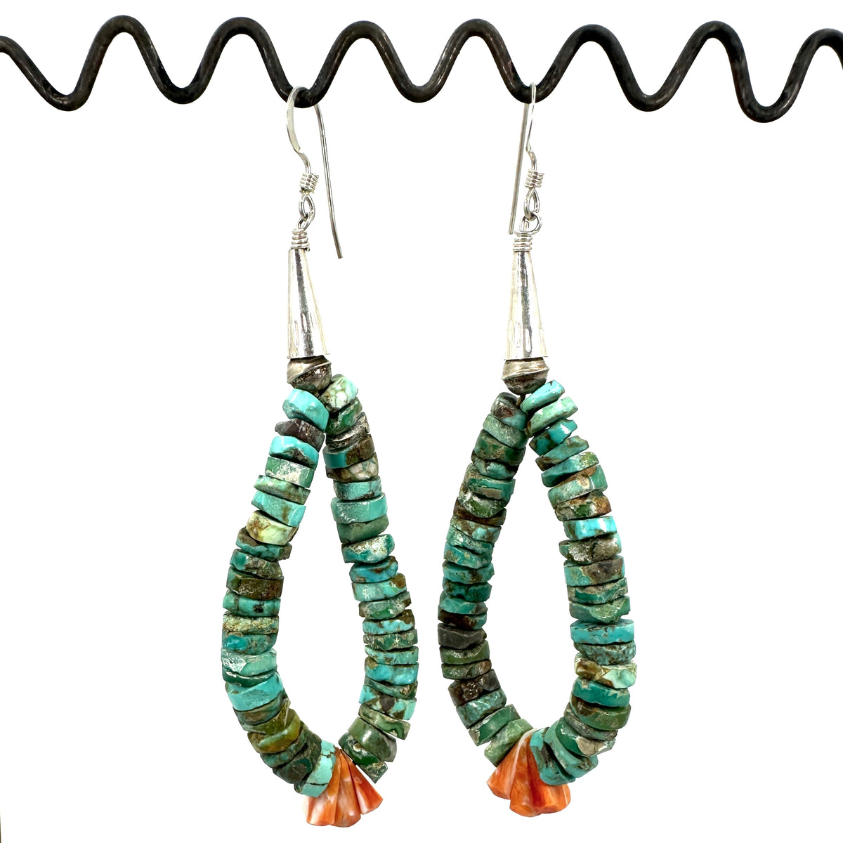 Ray Lovato Morenci Turquoise Jacla Earrings with Spiny Oyster