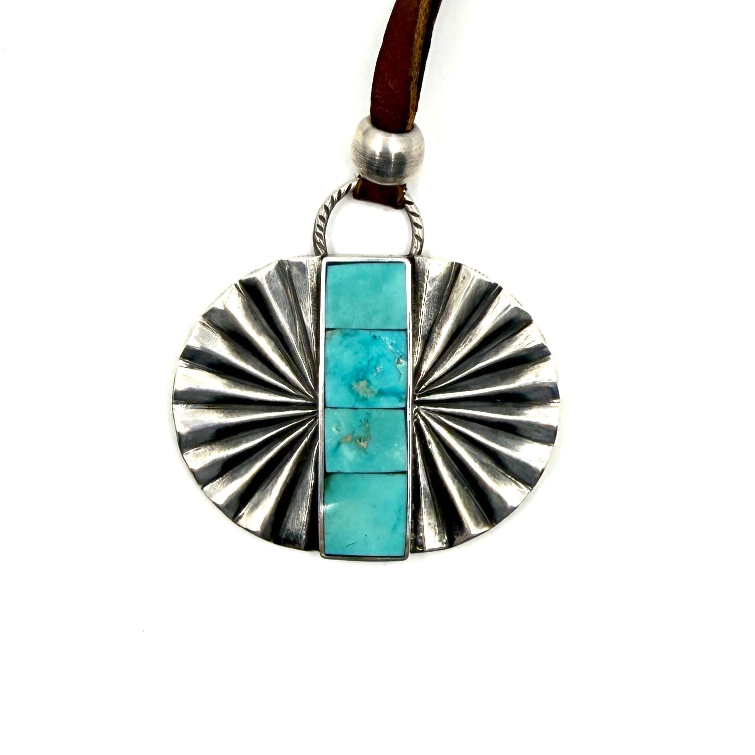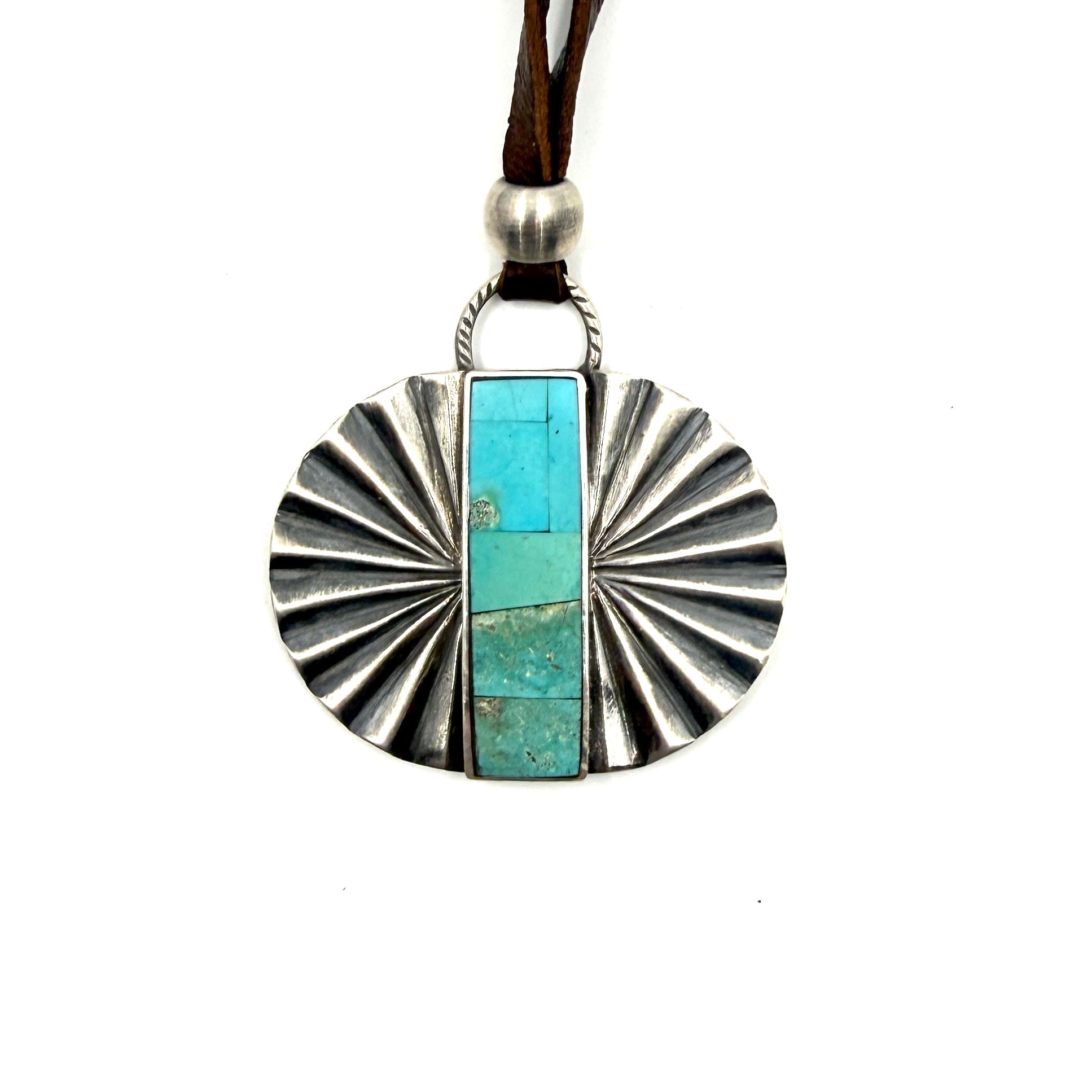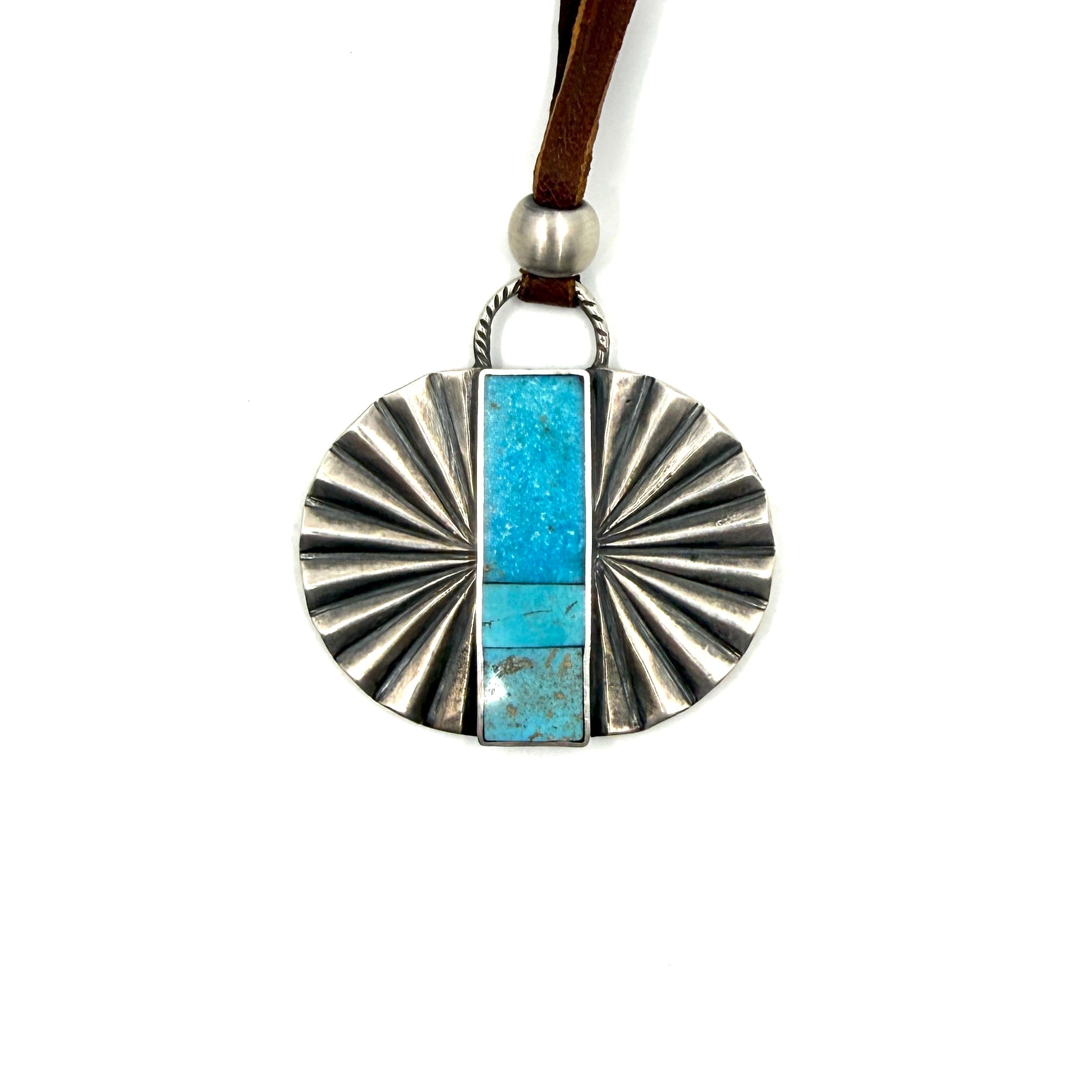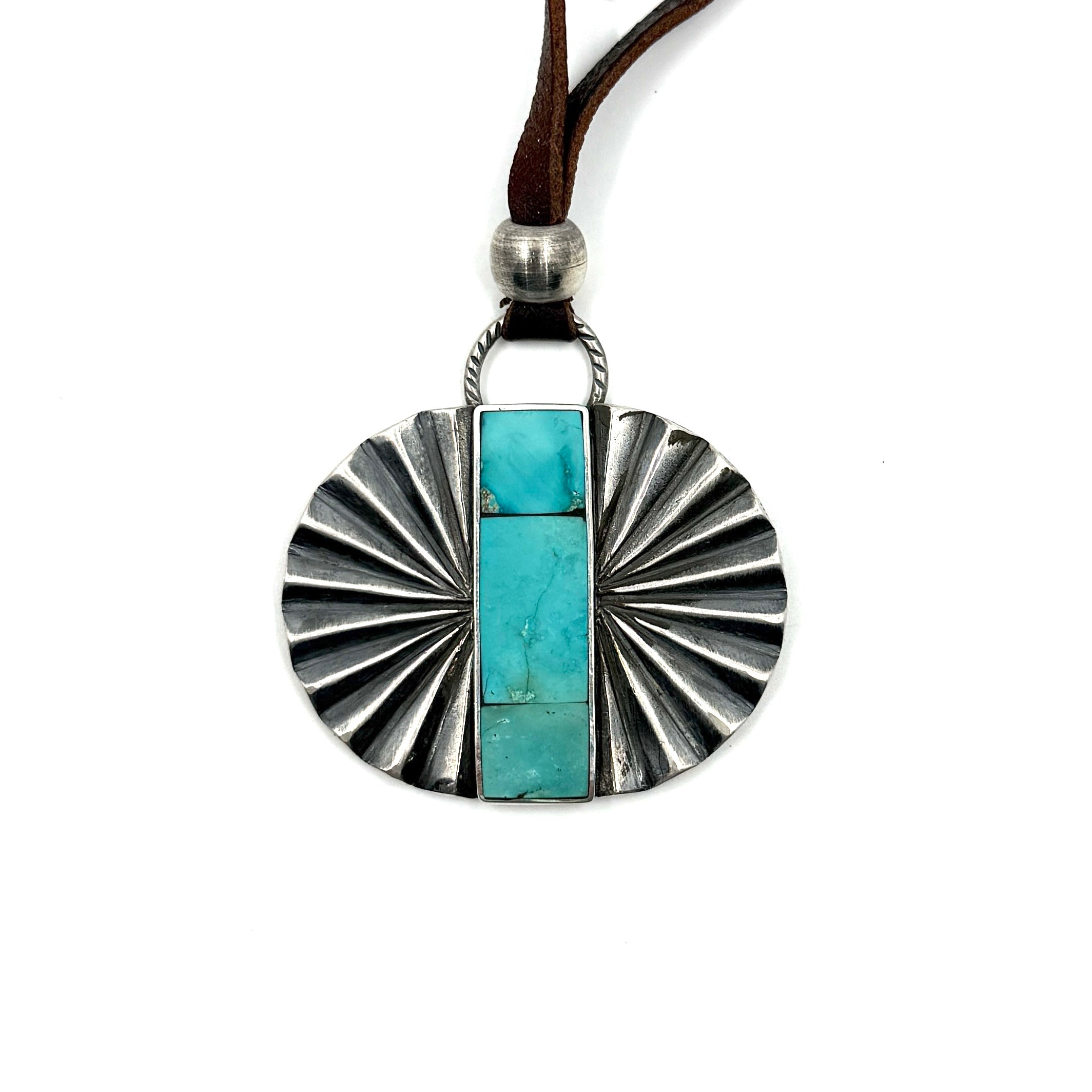 Jesse Robbins Double Fan Sterling Silver Pendant with Poquito Ridge Turquoise