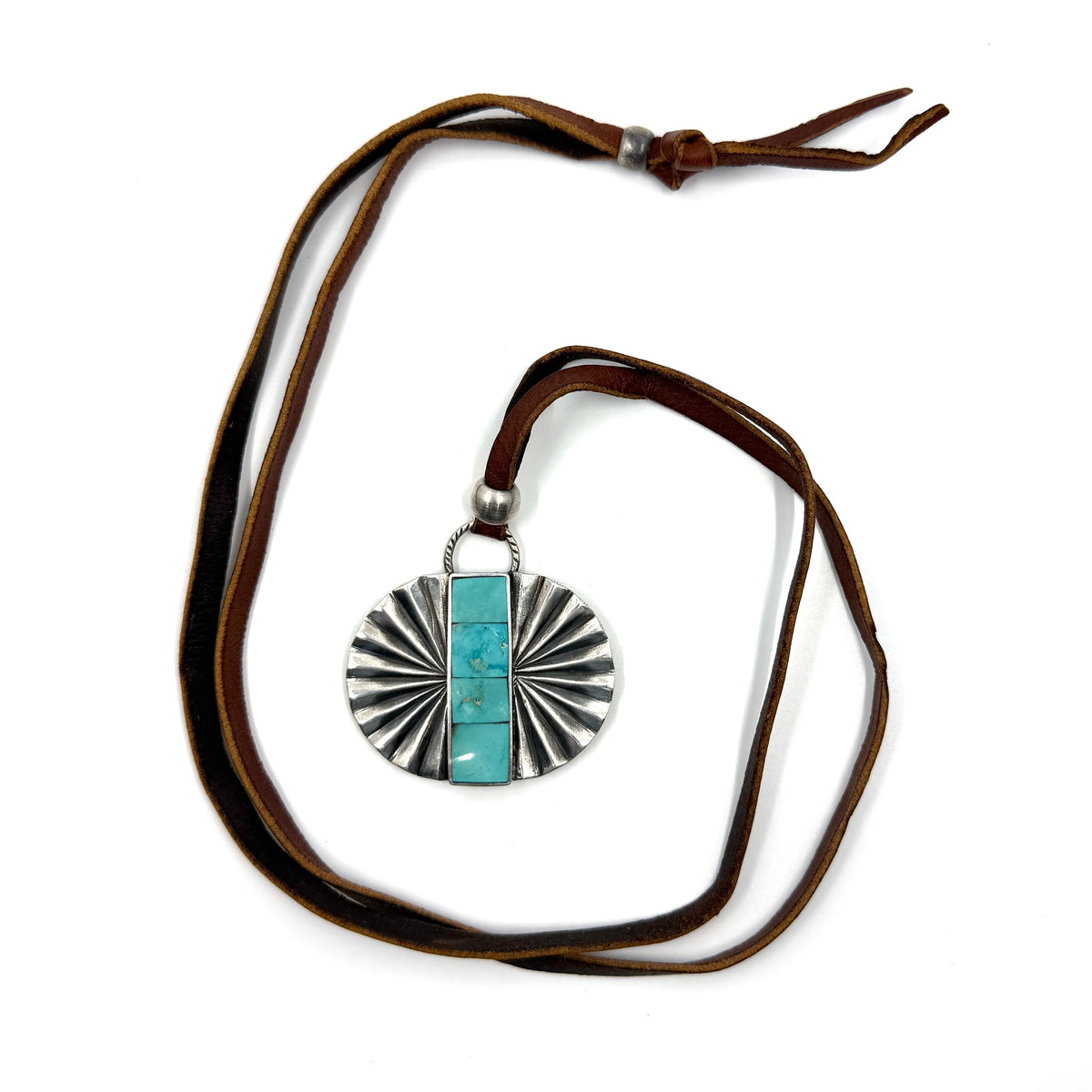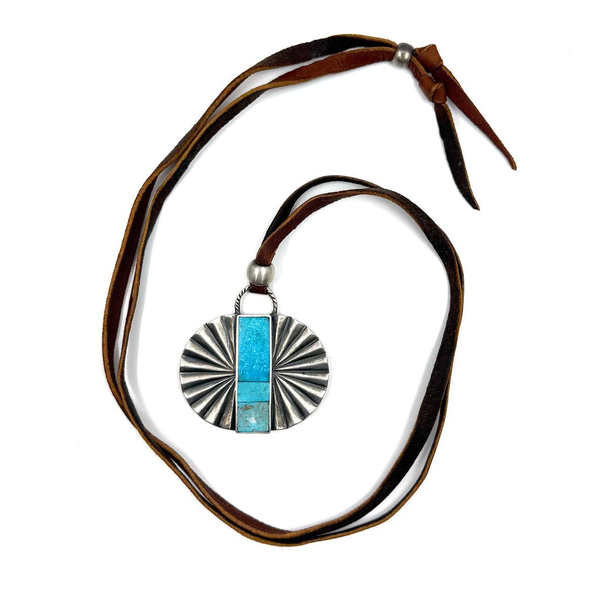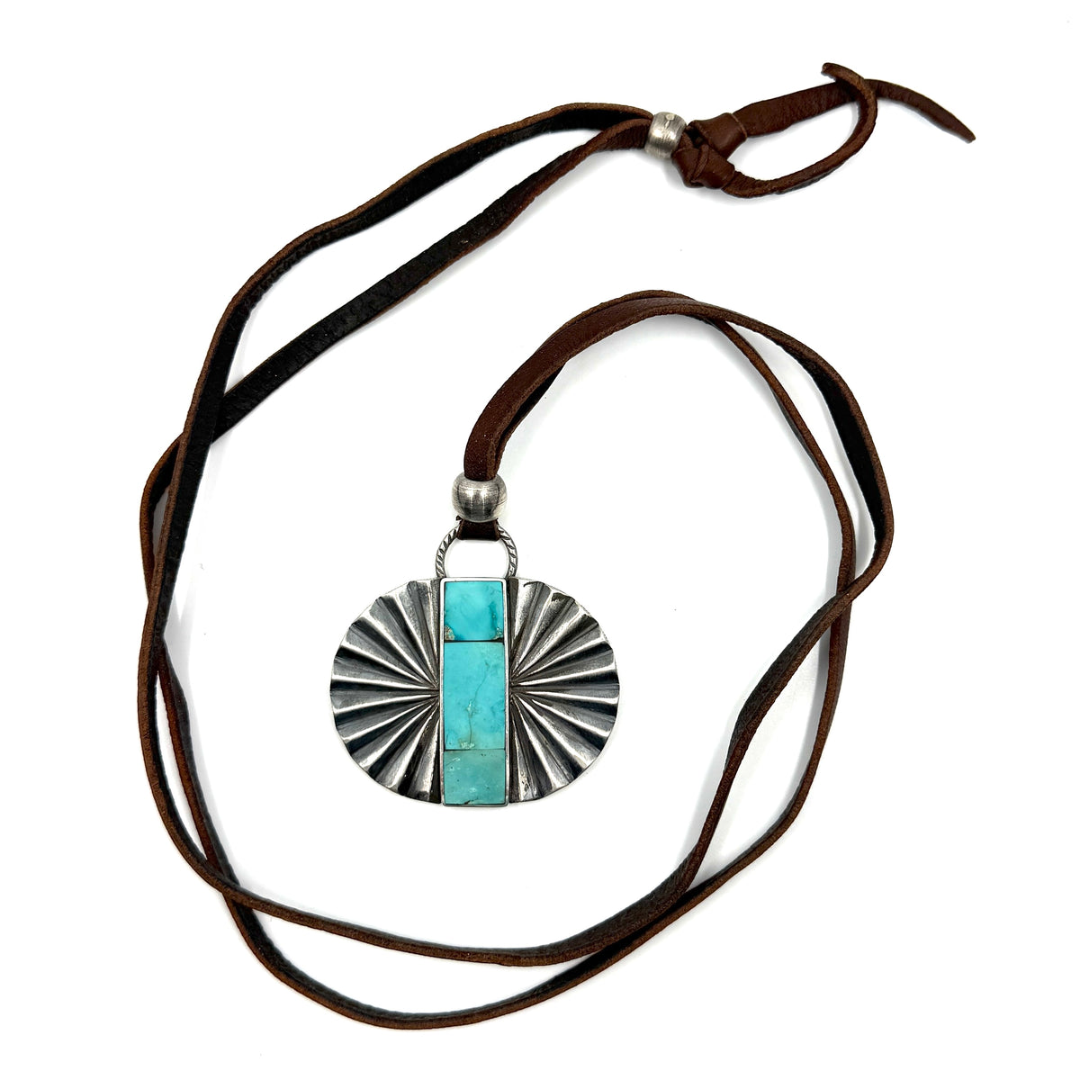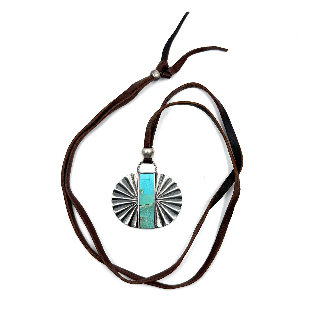 Jesse Robbins Double Fan Sterling Silver Pendant with Poquito Ridge Turquoise