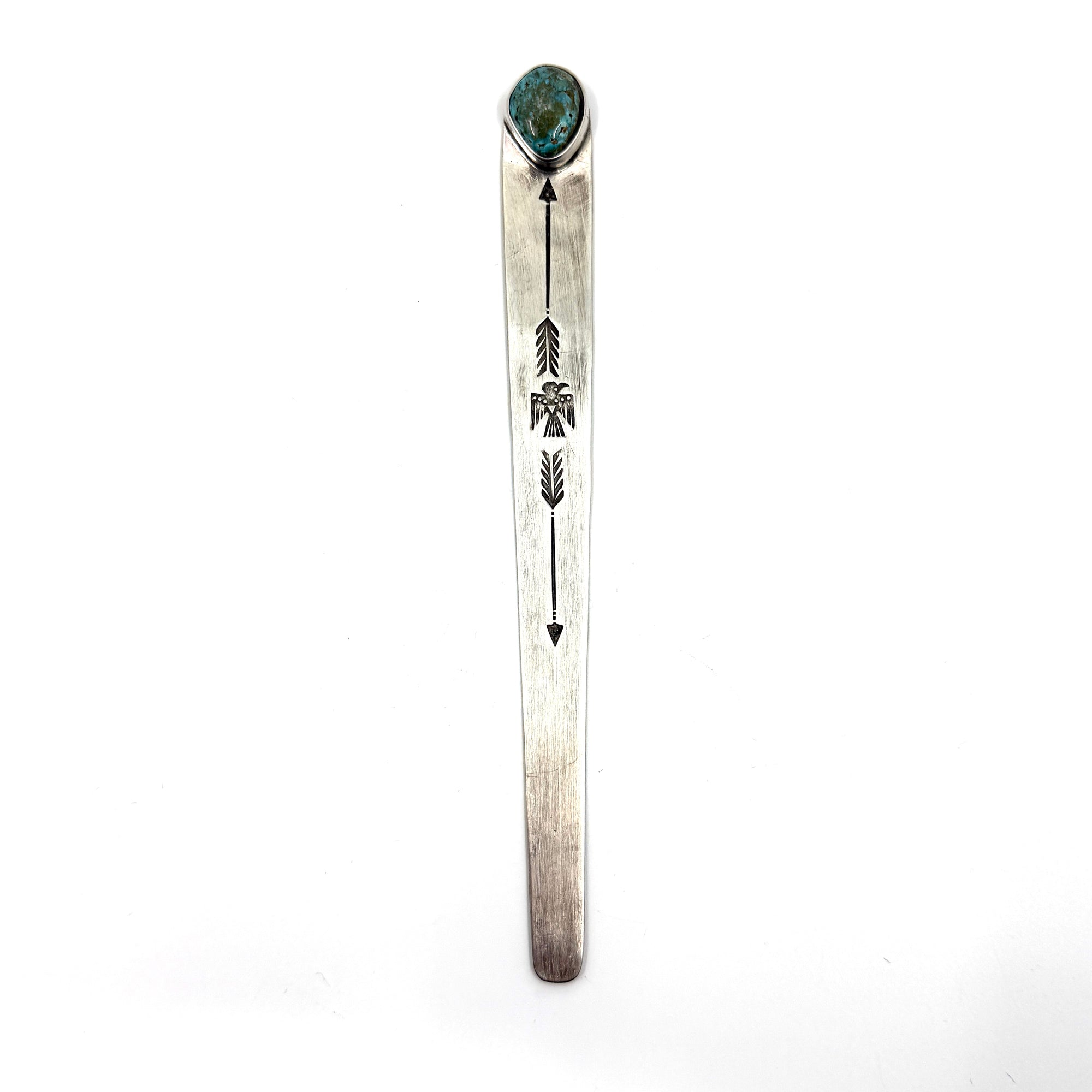 Sterling Silver stamped bookmark with a Poquito Ridge Turquoise stone by Jesse Robbins