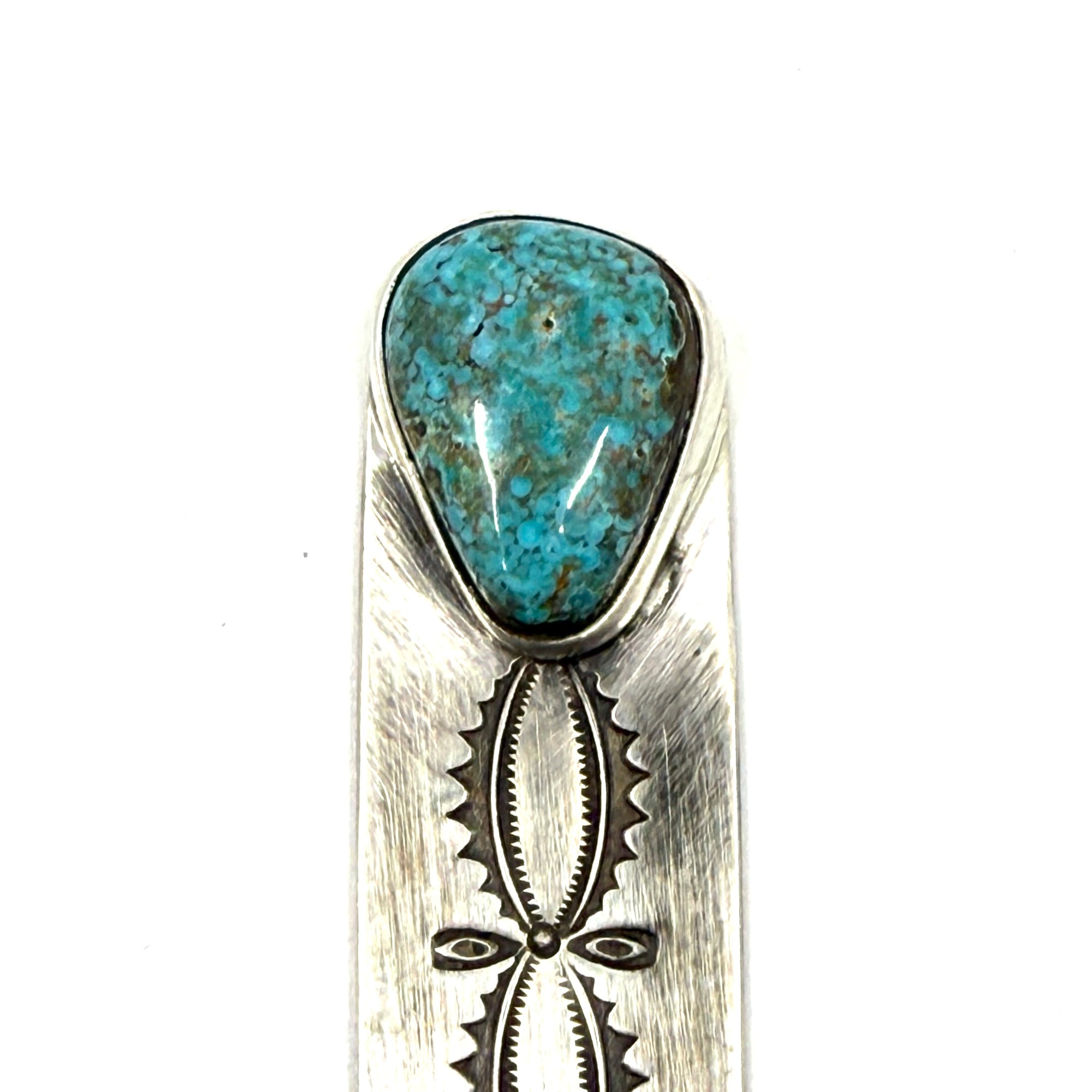 Sterling Silver stamped bookmark with a Poquito Ridge turquoise stone by Jesse Robbins