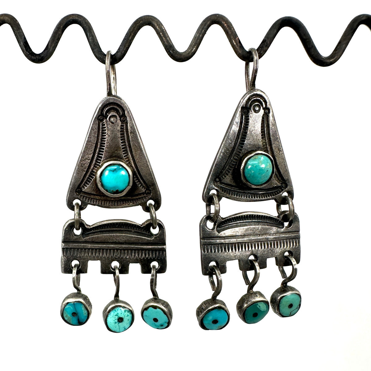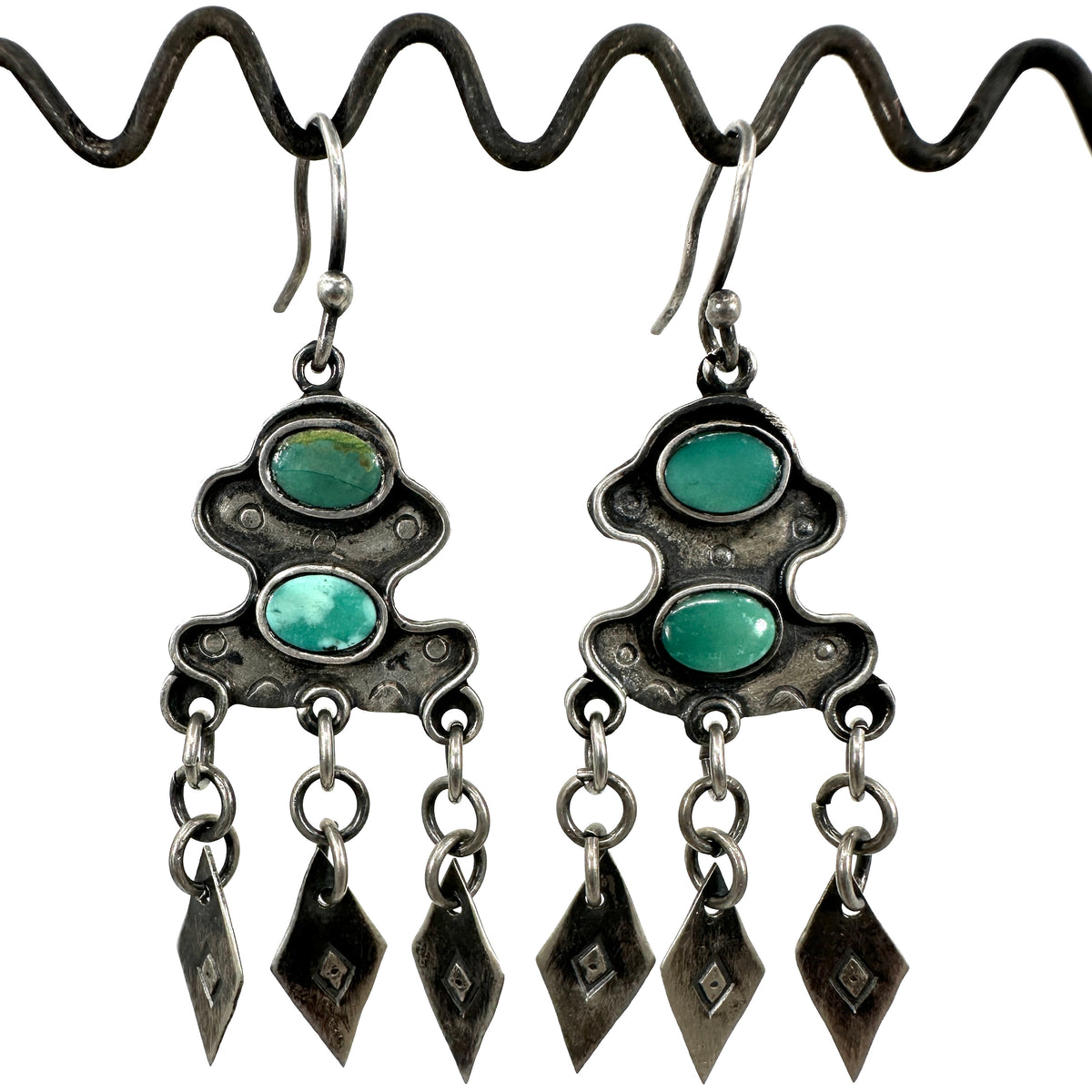 Jock Favour Three Bead and One Stone Dangle Earrings