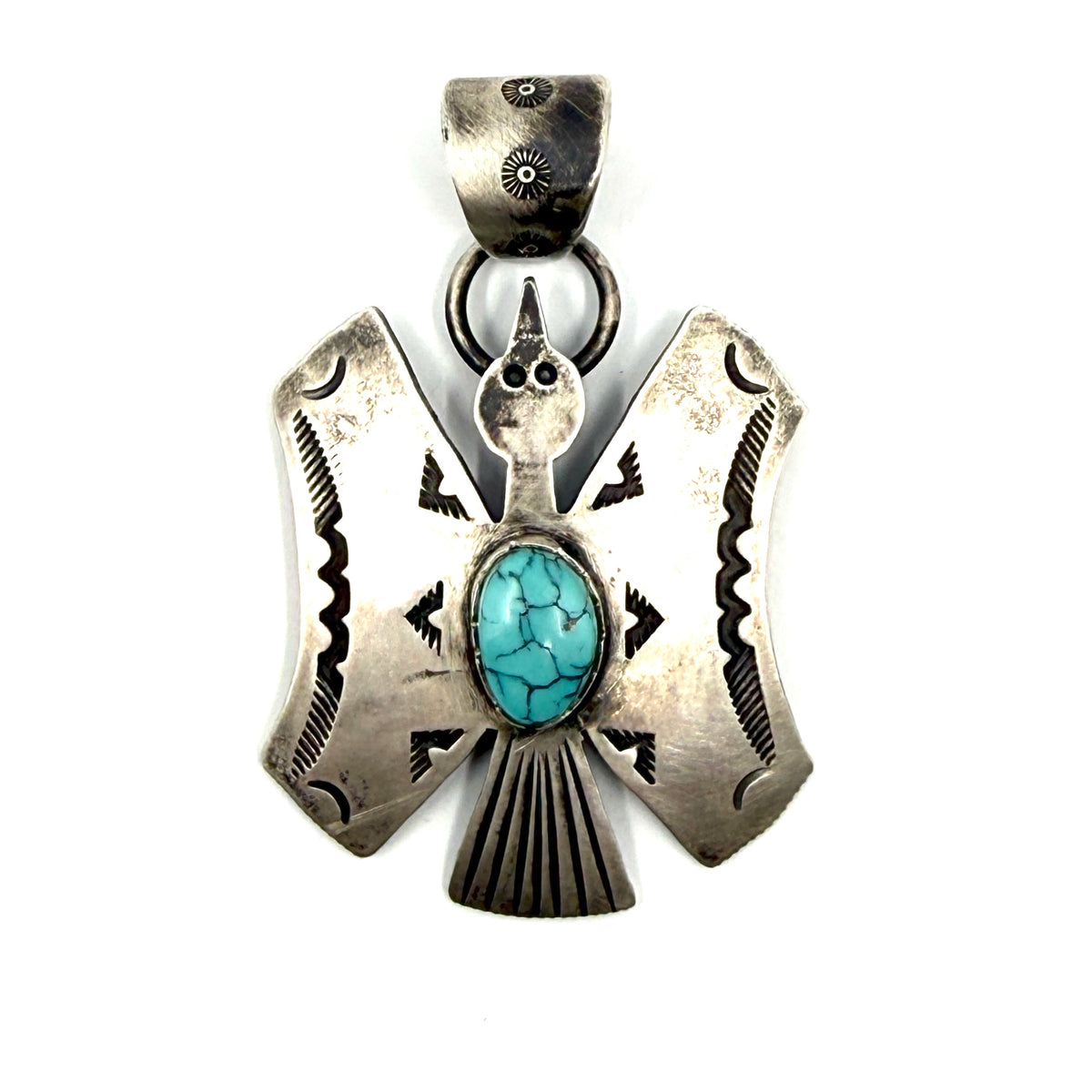 Bubba Shackleford Coin Silver Peyote Bird Pendant with Kingman Turquoise