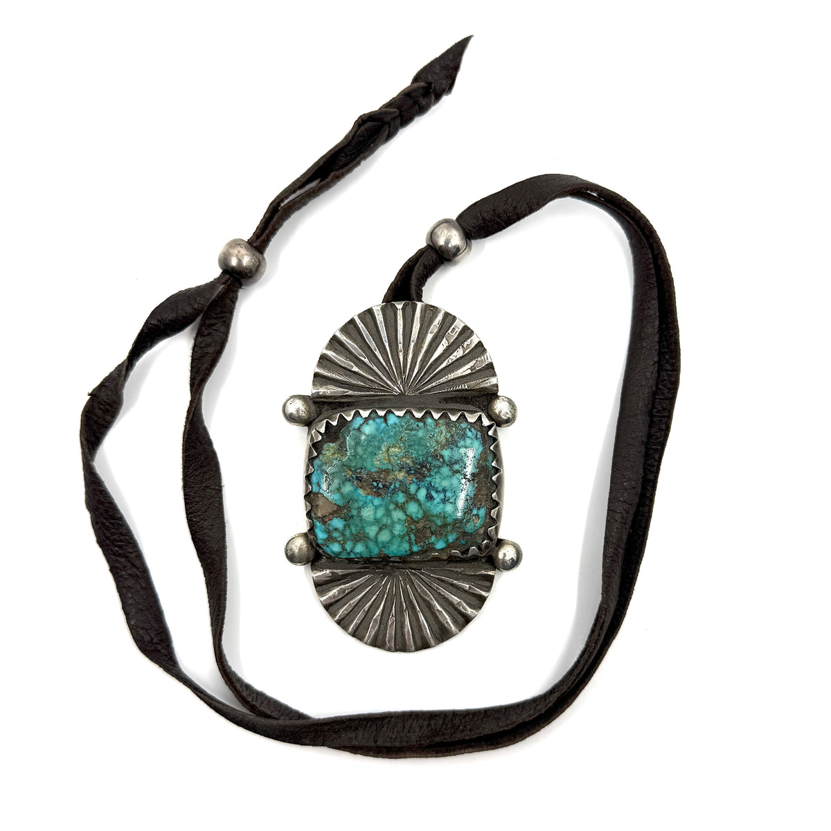 Coin Silver Repoussé Pendant with Kingman Turquoise by Joe O'Neill (Falcon Trading Company)
