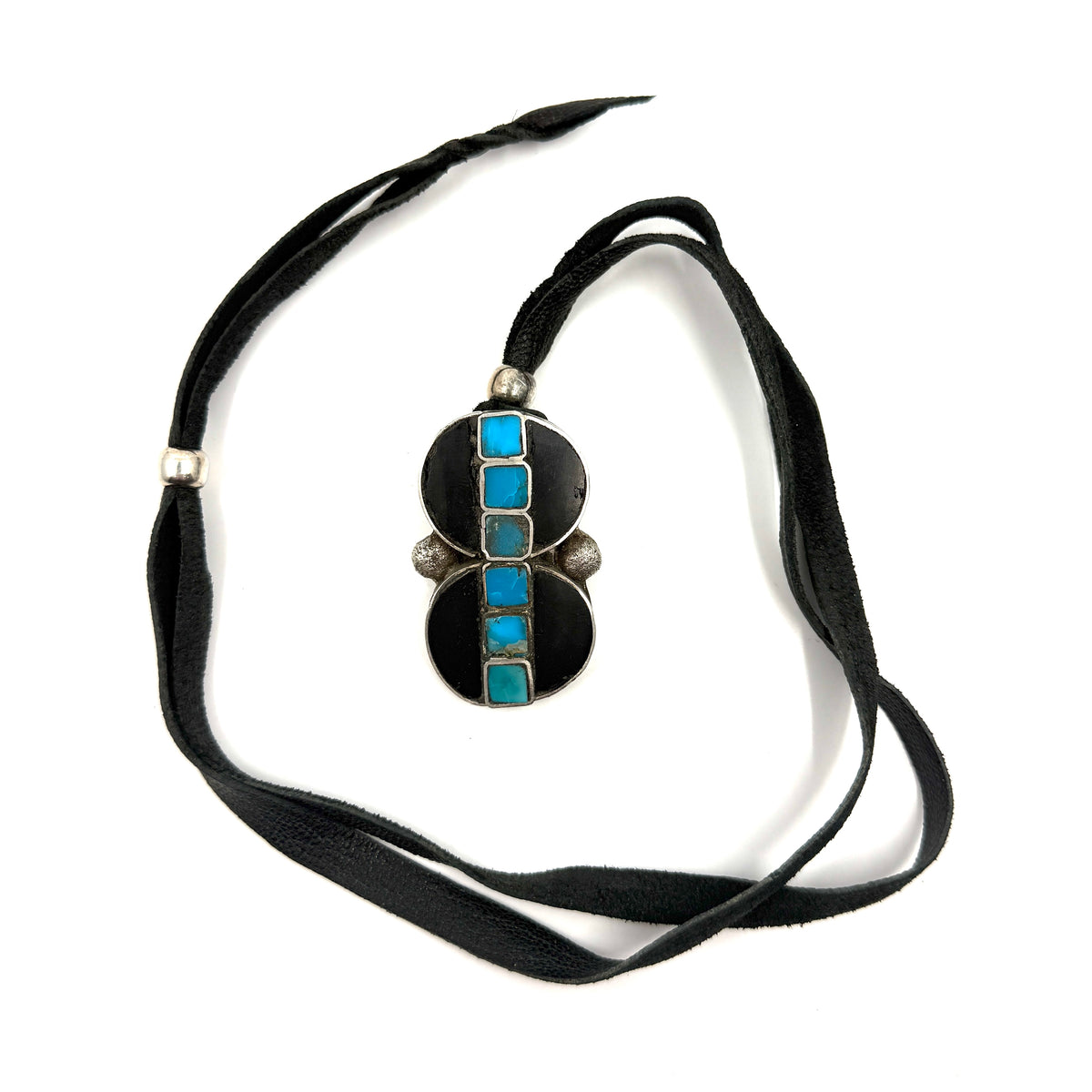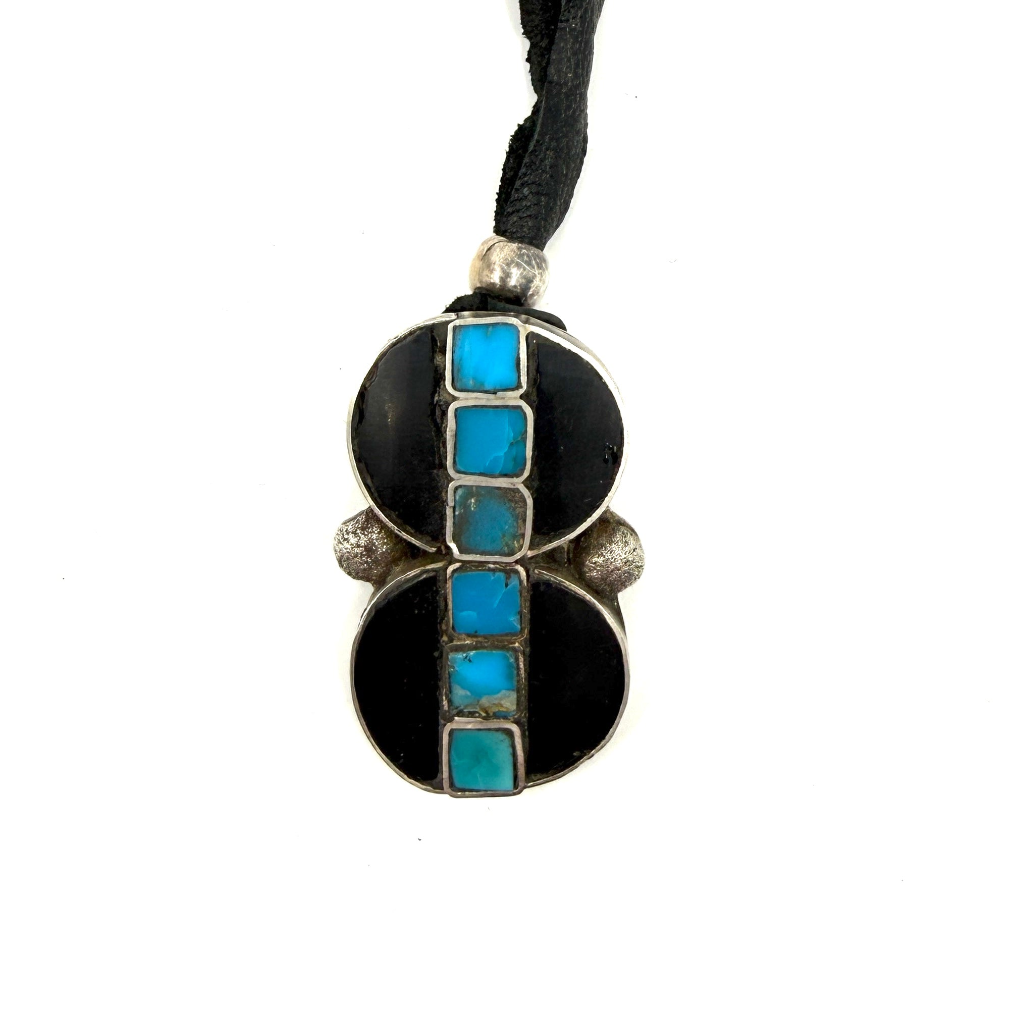 Tufa Cast Pendant with Mosaic Turquoise Inlay by Joe O'Neill (Falcon Trading Company)