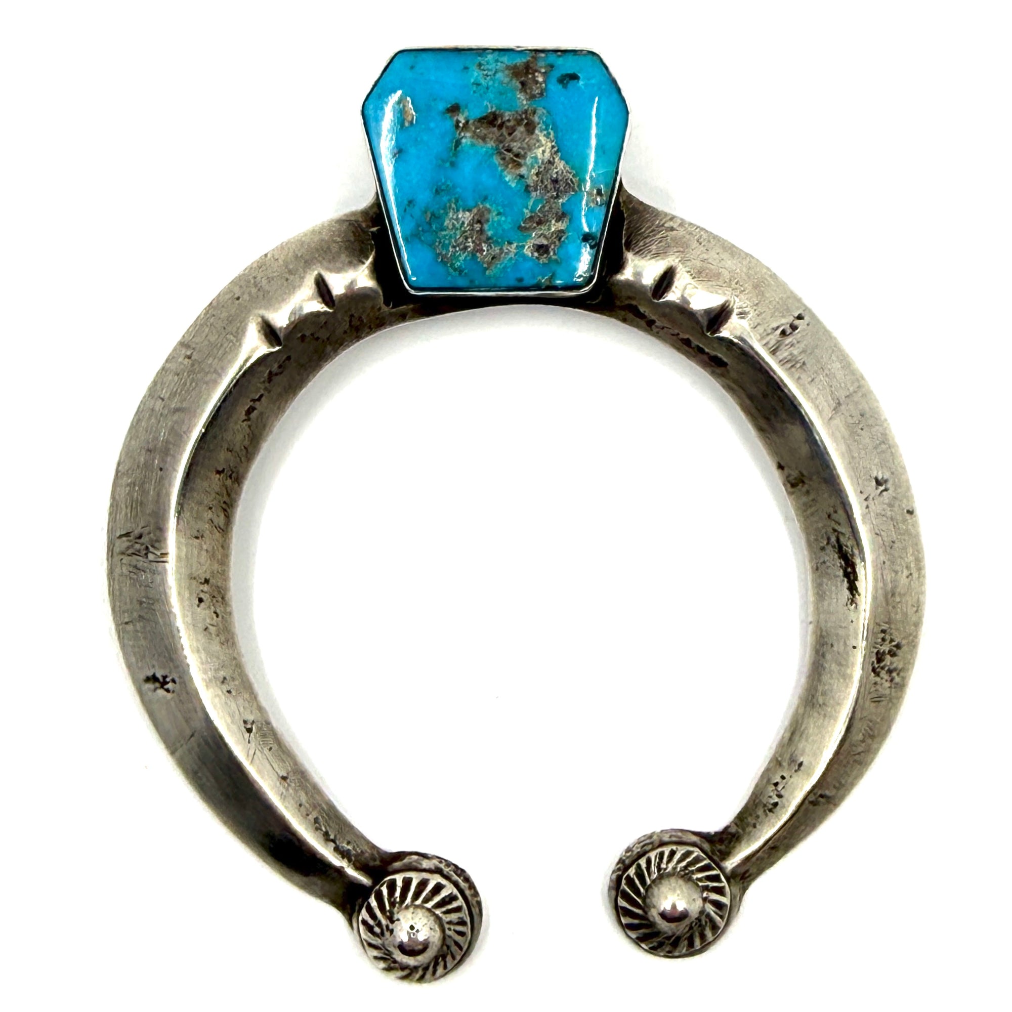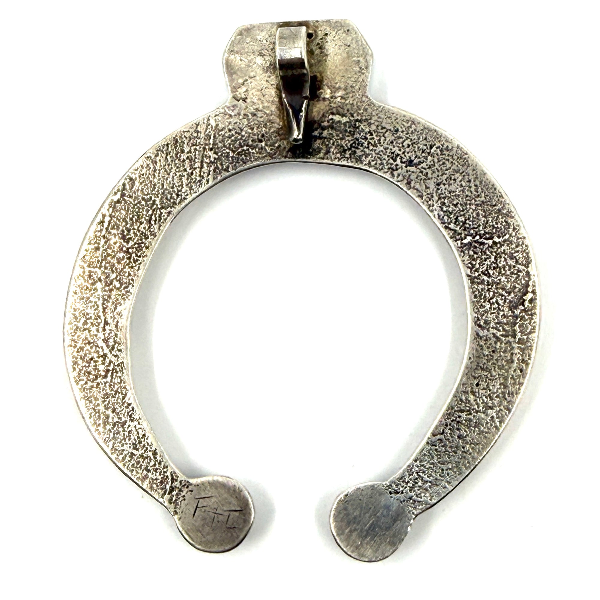 Sterling Silver Tufa Cast Naja Pendant with Morenci Turquoise stone by Bubba Shackleford of Falcon Trading Company