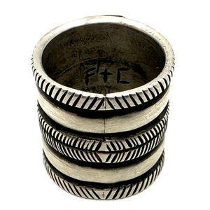 Wide Coin Silver Ring with Fox Turquoise by Joe O'Neill (Falcon Trading Company)
